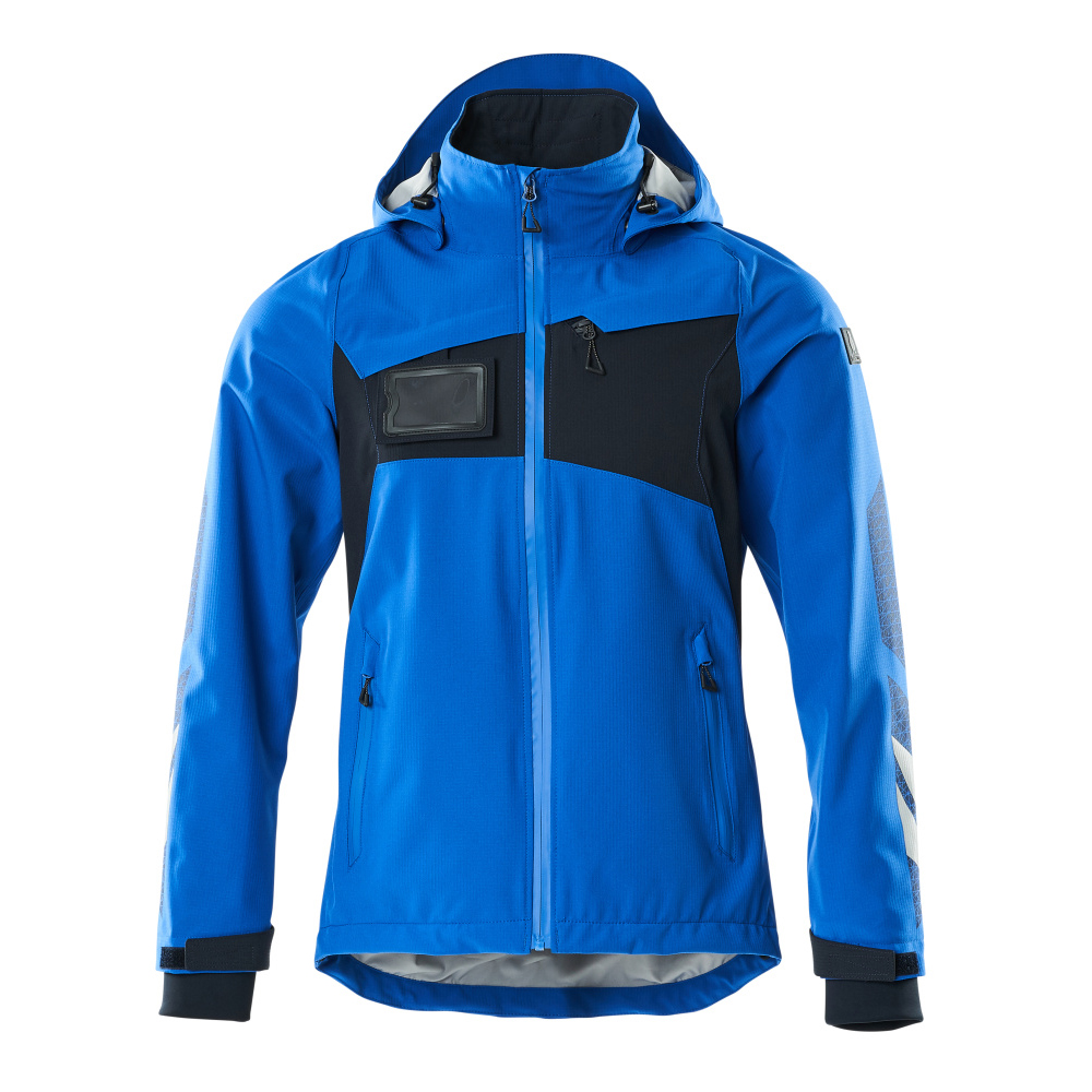 Metervaran är lätt. Vindtätt och vattenavvisande. Sömmarna är tejpade. Huvan är avtagbar, fodret har justerbart resårsnöre. Stängning med blixtlås och invändigt vindfång. Innerficka med blixtlås. ID-kortshållaren är avtagbar. Bröstficka med blixtlås. Framfickor med blixtlås. Resårkanten i nederkanten är reglerbar. Ribbstickning vid handleden (dold i vindskyddet). Med tryck och reflexer.