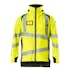 Fluorescerande med lodräta och sneda tvärgående reflexer. Tvåfärgat. Hög andningsbarhet samt vind- och vattentät. Sömmarna är tejpade. Huvan är avtagbar, fodret har justerbart resårsnöre. Reglerbar metalltråd i båda sidorna av huvan. Stängning med vattentätt blixtlås och invändigt vindfång. Innerfickor - två med blixtlås och en öppen nätficka. ID-kortshållaren är avtagbar. Bröstficka med vattentätt blixtlås. Framfickor med vattentäta blixtlås. Hög krage. Ribbstickning i nedre kanten på framsidan av jackan. Extra tyg nederst på ryggen kan vikas ned med knappar och ge extra längd baktill och därmed extra skydd mot väder och vind. Ribbstickning vid handleden (dold i vindskyddet). Resår vid handleden. Med tryckeffekter.