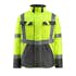 Fluorescerande och med lod- och vågräta reflexer. Tvåfärgat. Vindtätt och vattenavvisande. Foder av quilt och kviltad fleece. Stängning med blixtlås, vindskydd och dolda tryckknappar. Ficka med blixtlås och vindfång. Bröstfickor med lock och dolda tryckknappar. D-ring. Fickor på framstycket. Tryckknappsjustering vid handleden och i nederkanten. Blixtlås nederst på ryggen, invändigt, för användning vid tryck/broderi.