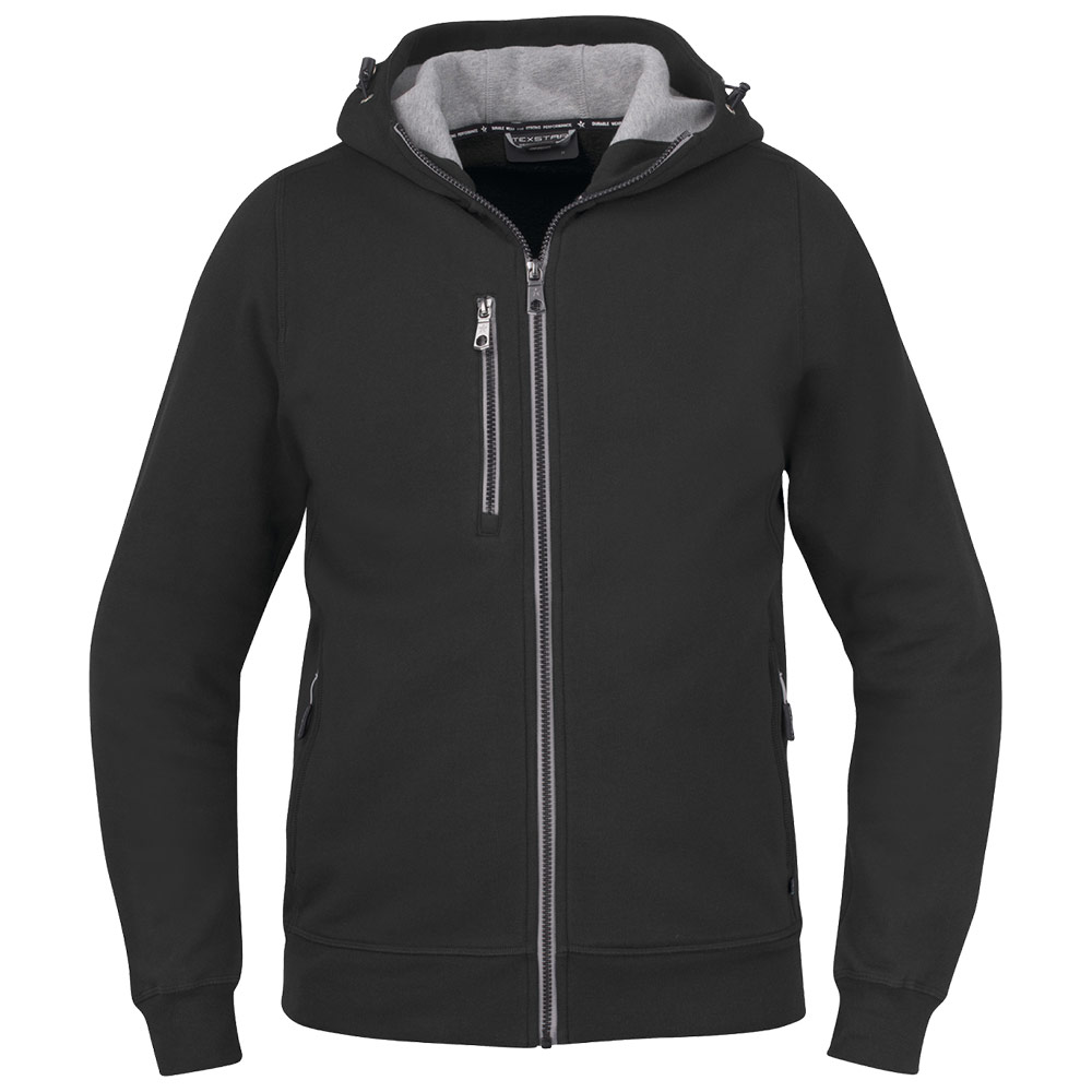 Skön huvtröja i bomull och polyester.Hög krageOmbonad huvaÄrmarna med rejäla muddarGrov dragkedja i halsen och bröstfickanFungerar som profil- och serviceplaggMaterial 80 % bomull, 20 % polyester, 325g/m2
