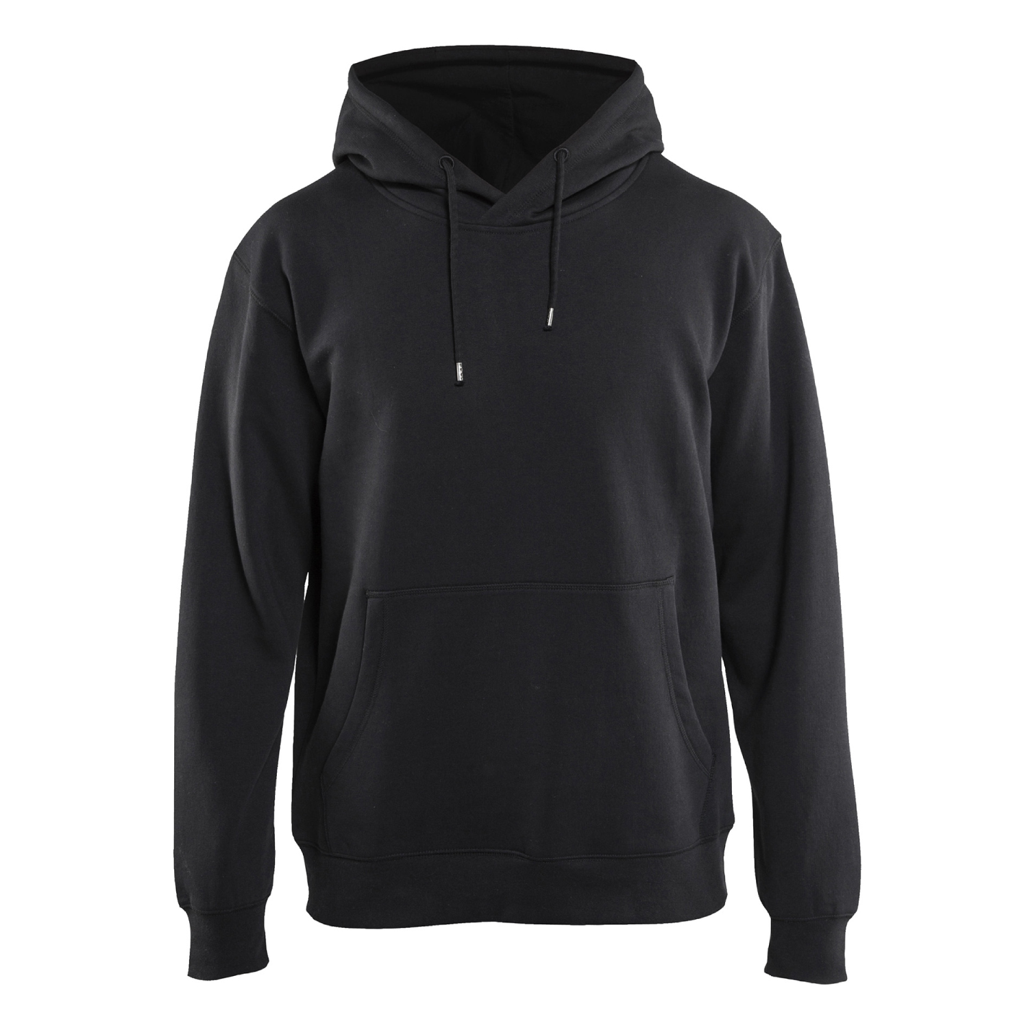 Enfärgad huvtröja från Blåkläder med justerbar luva och känguruficka samt invändig telefonficka med blixtlås.