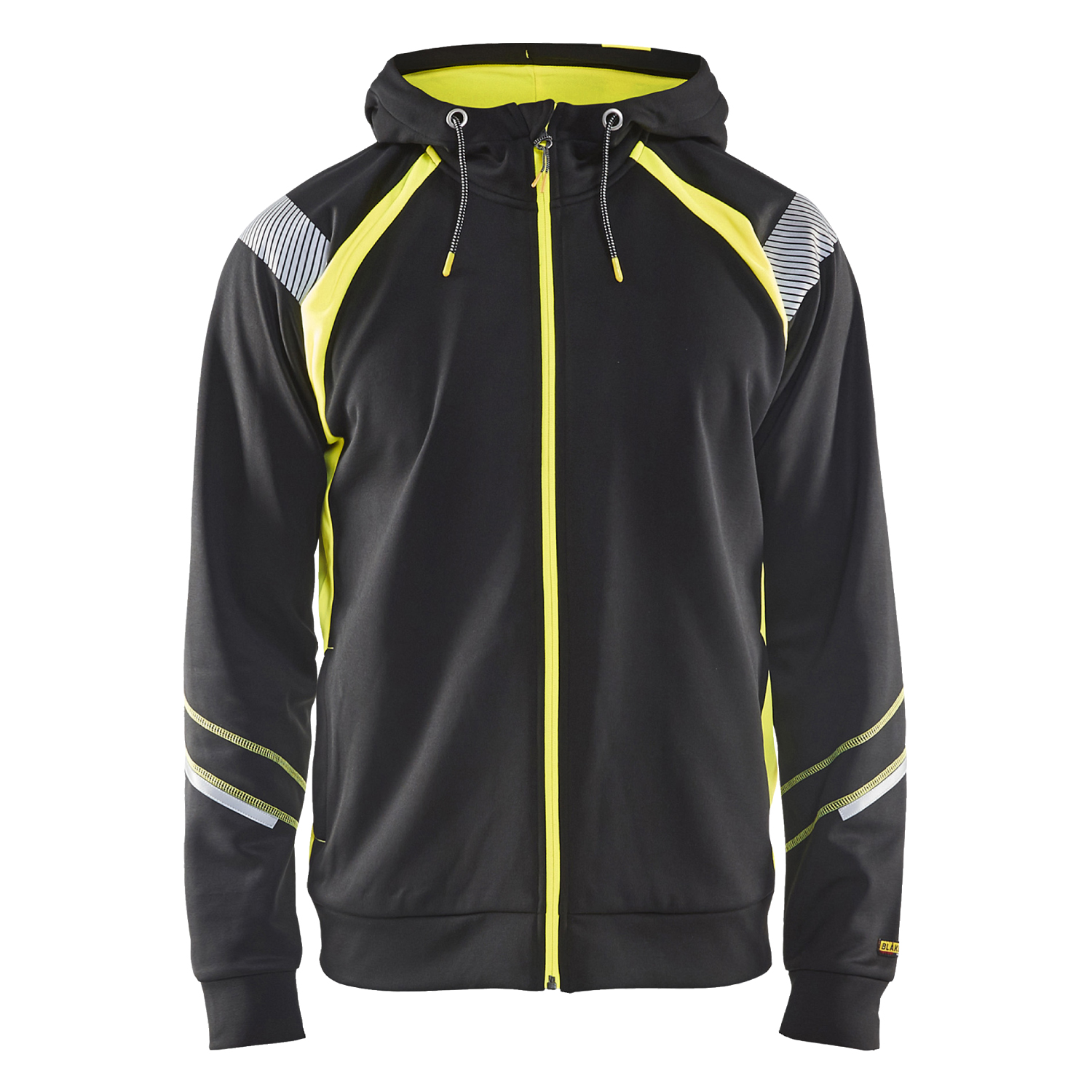 Mjuk huvtröja från Blåkläder som är tillverkad i 100% bomull. Den har skurna reflexdetaljer och varselpaneler i 100% polyester för ökad synbarhet.