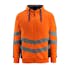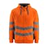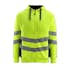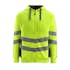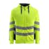 Fluorescerande med sneda tvärgående reflexer. Tvåfärgat. Modern passform. Behaglig bomullsinsida och slitstark polyester på utsidan. Reflexen är elastisk. Huva med snörning. Hel blixtlås. Framfickor med blixtlås. Ribbstickning i nederkanten och vid handlederna.