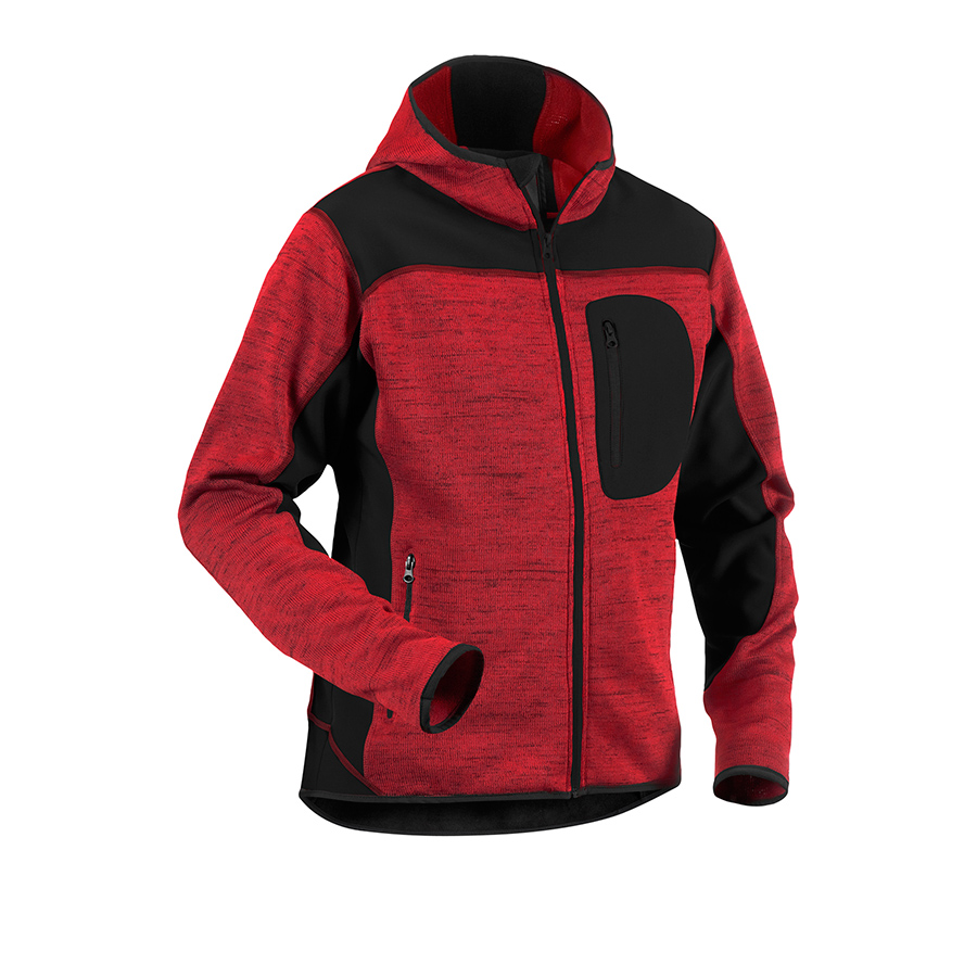 Stickad jacka med luva i snygg design och bekväm kvalitet. Jackan har dragkedjor i kontrastfärg och är förstärkt med softshell-material på axlar och ryggslut för ökad slitstyrka. Fritid som arbete, detta är jackan att trivas i. Finns även som damjacka, artikel 4931.
