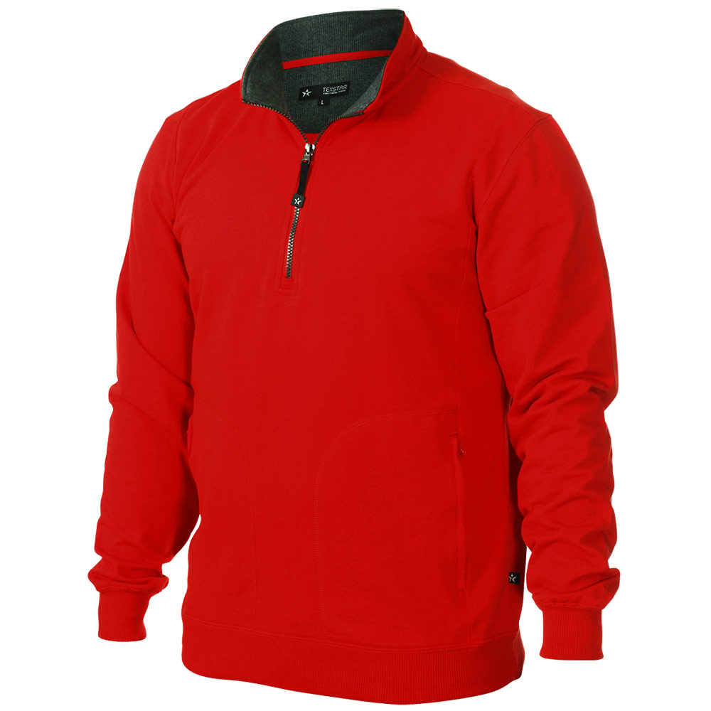 Crew T-neck med blixtlås i halsen, kontrast färg på insidan av kragen, två sidofickor med blixtlås, högra muddar och öglad insida för ökad komfort.
