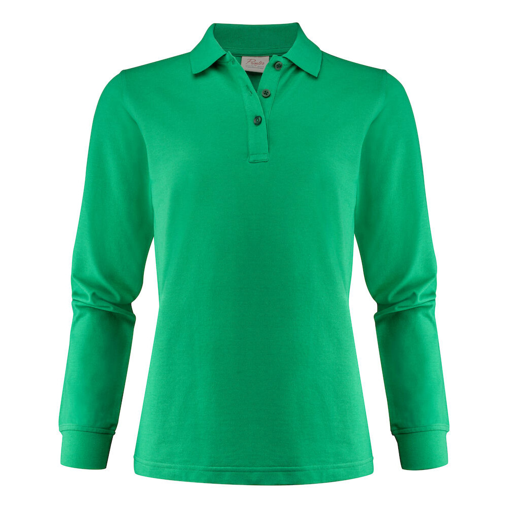 Piké med långa ärmar, slätstickad krage och sidoslitsar. 3-knapps stängning. I vänster sidosöm finns en tvättchipficka. Oeko-Tex 100 certifierad. Förpackad i en biobaserad, komposterbar påse.