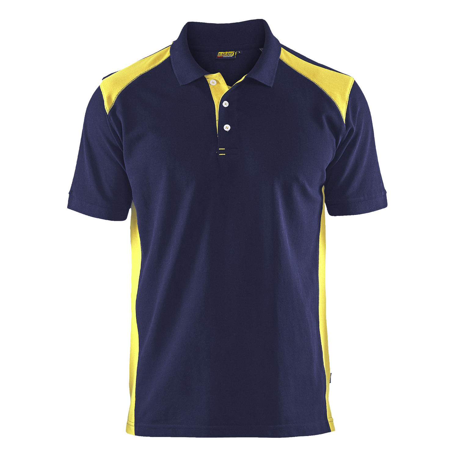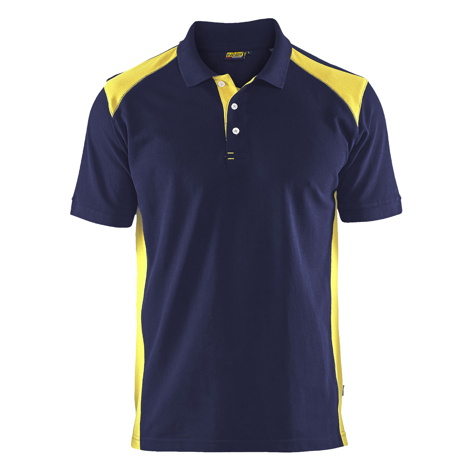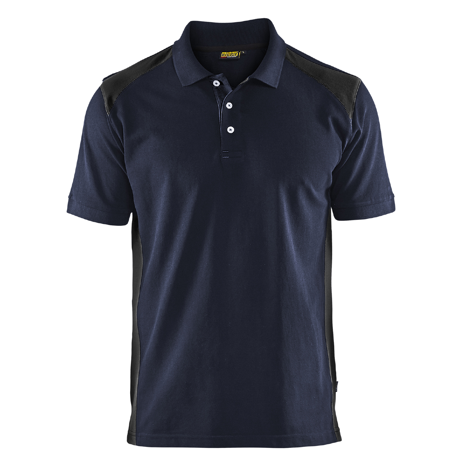 Pikétröja från Blåkläder med ribbstickad krage, förstärkt nack- och axelsöm samt slits i sidan.