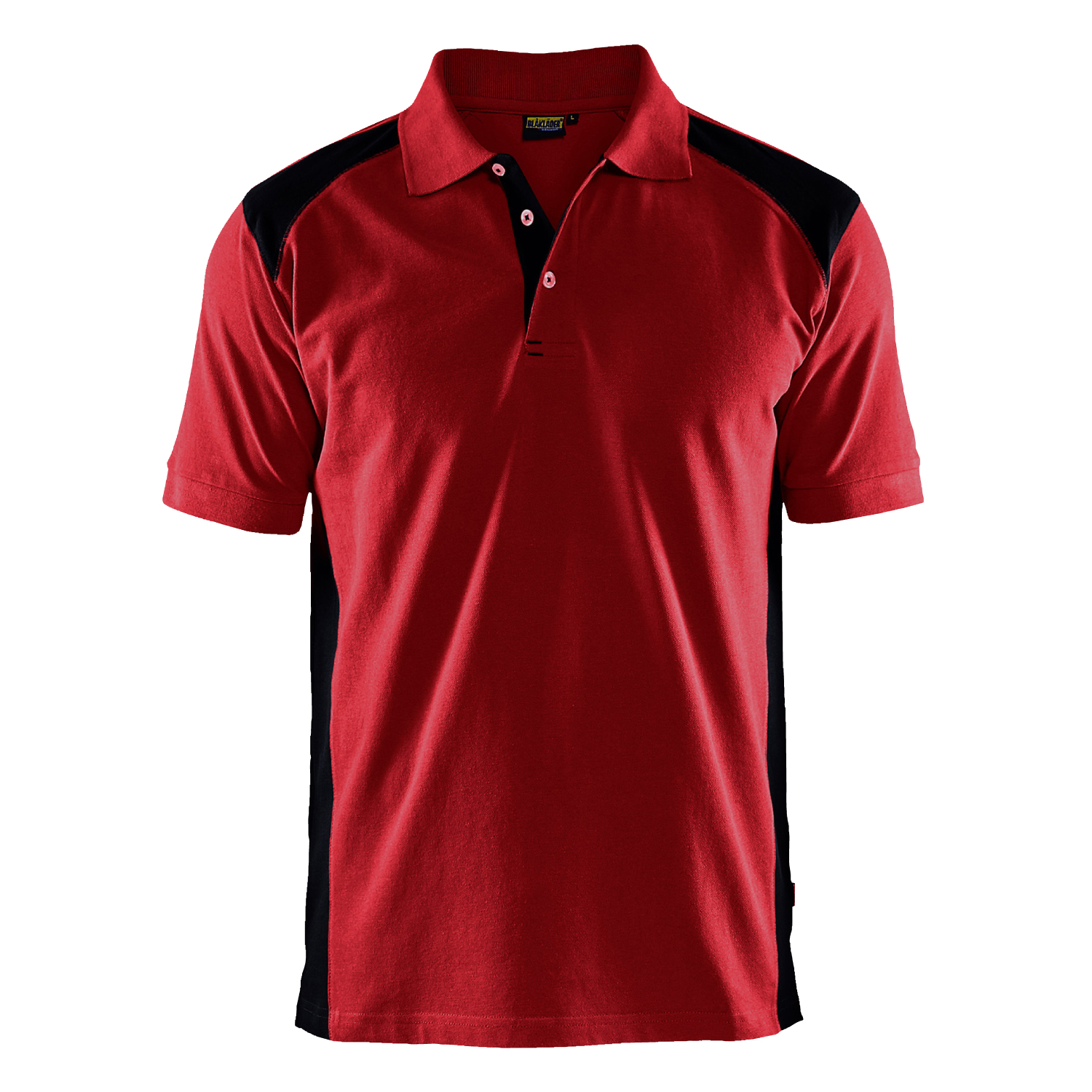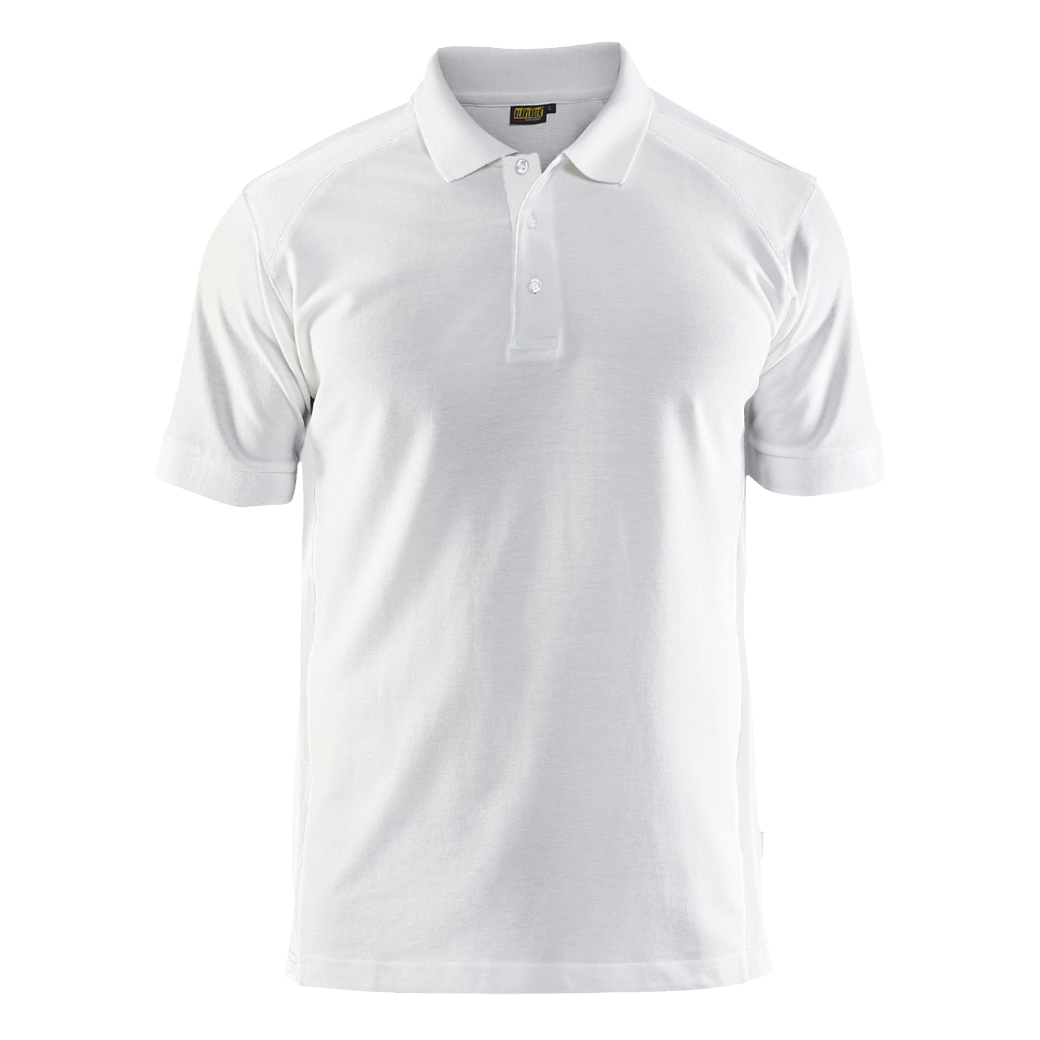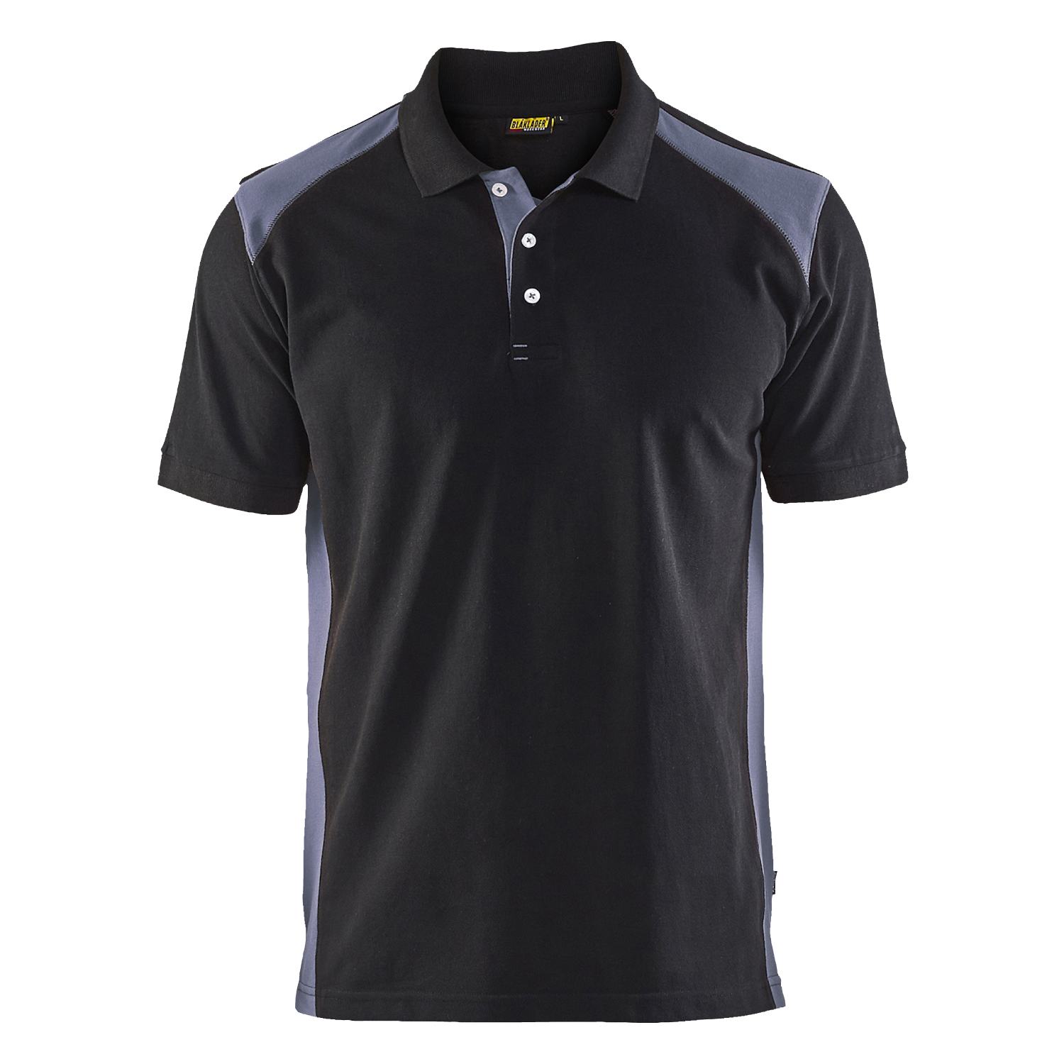 Pikétröja från Blåkläder med ribbstickad krage, förstärkt nack- och axelsöm samt slits i sidan.