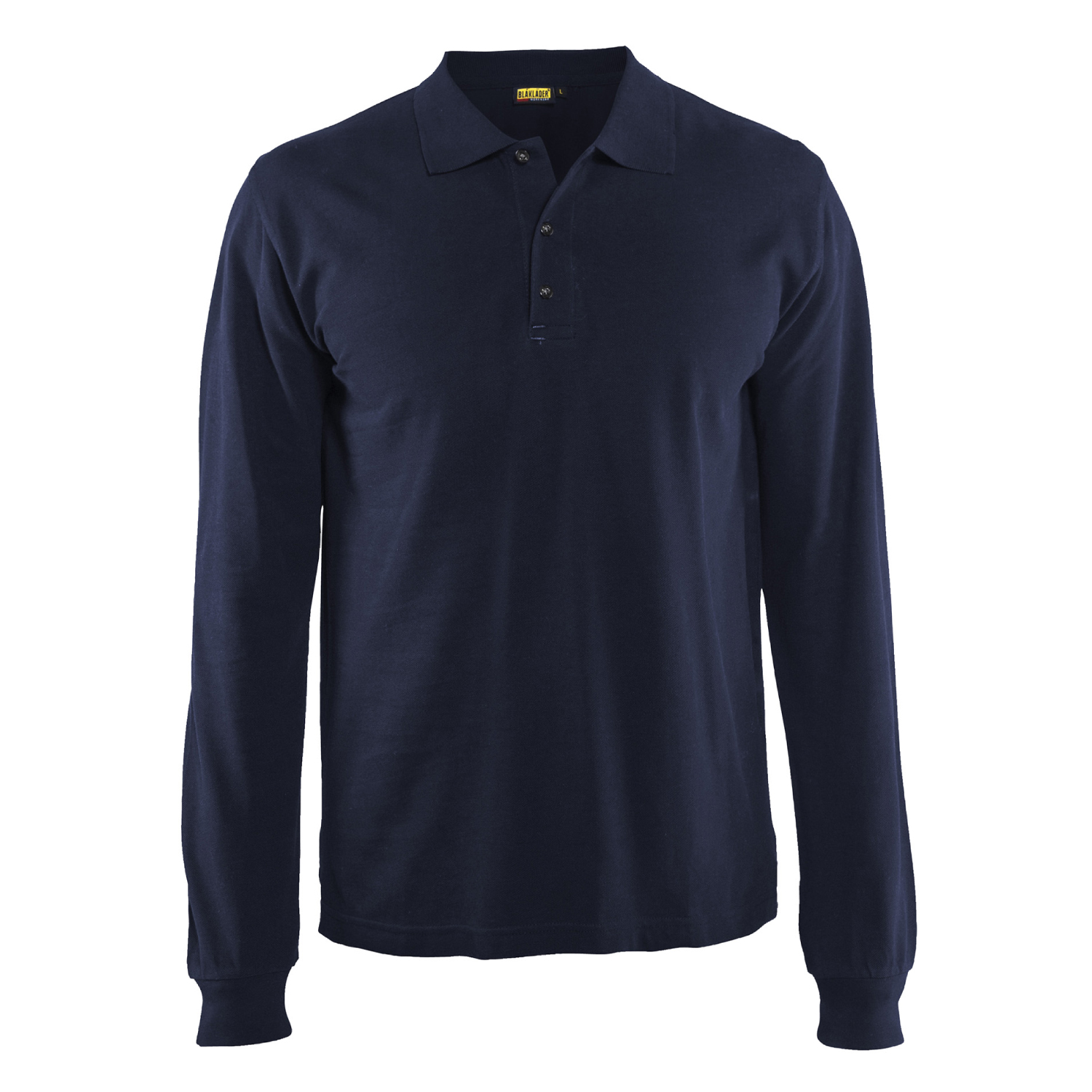 Långärmad pikétröja från Blåkläder med ribbstickad krage och slits i sida.