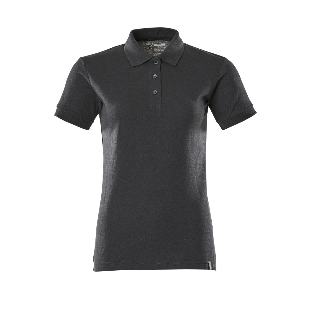 Lady passform. Tillverkad av hållbara material. Ribbstickning i kragen. Slå med knappar. Nackband.