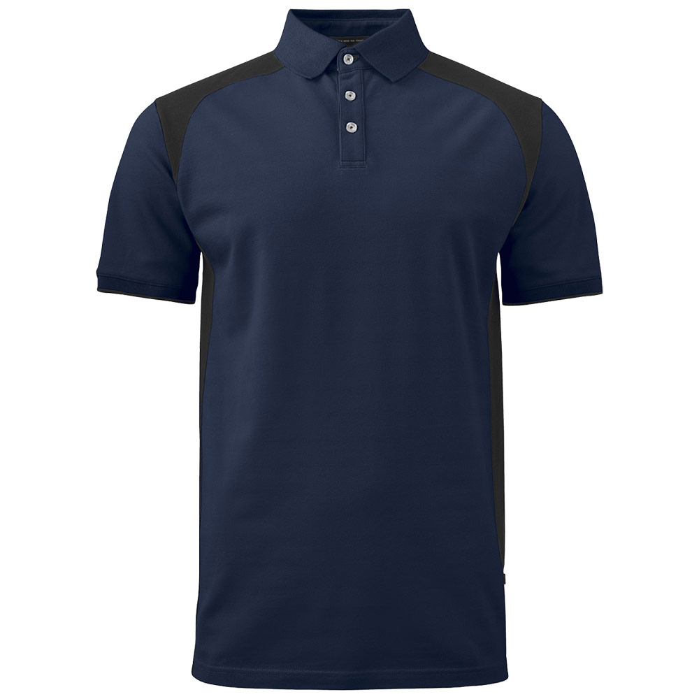 Pikétröja med tre knappar och kontrastfärg i sidopaneler, över axlarna och i ärmsluten.