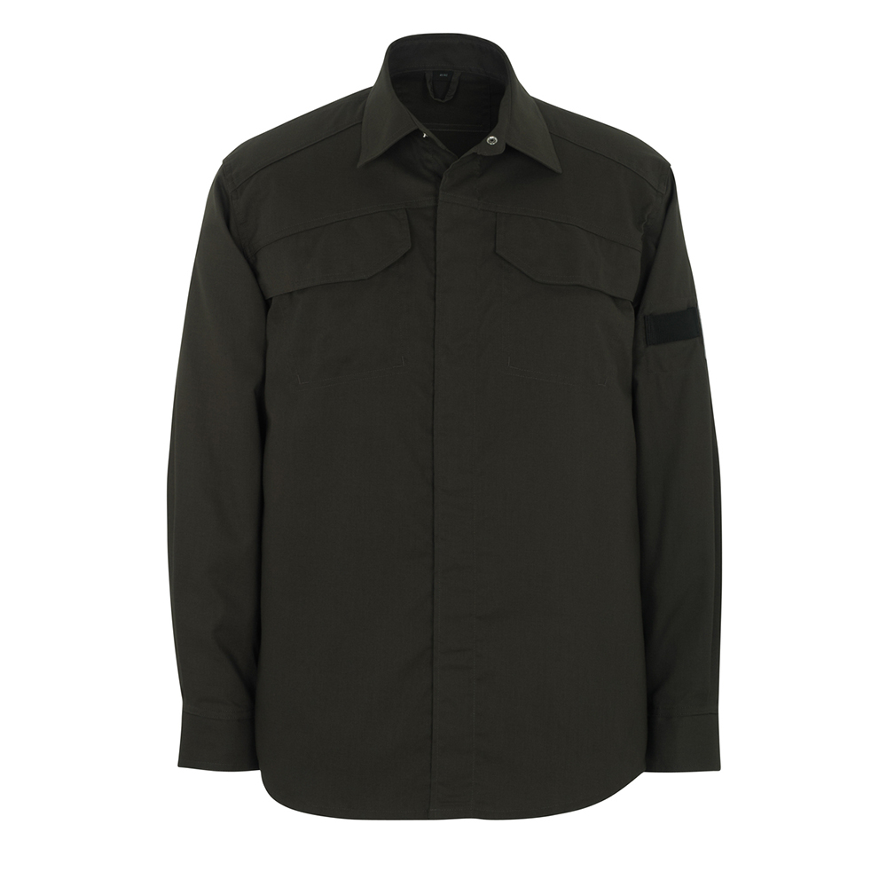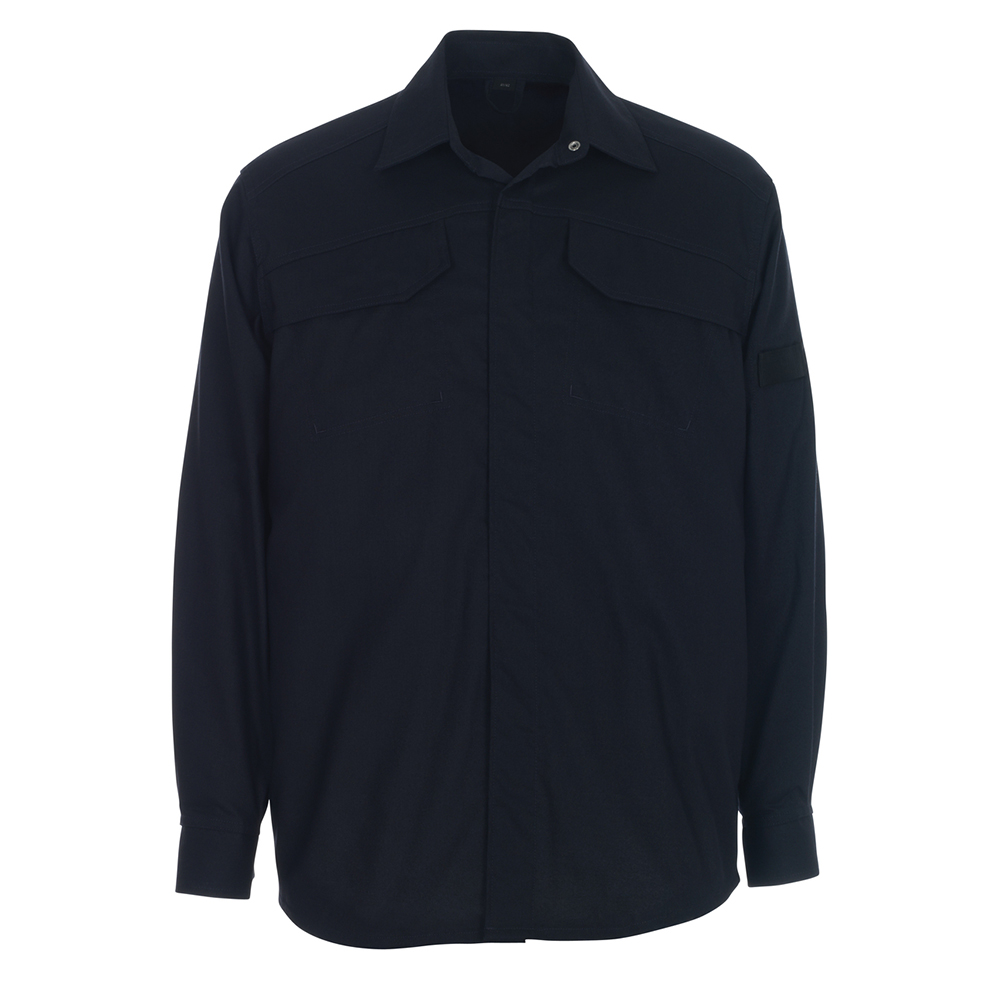 Modern passform. Antistatisk och flamsäker. Tvånålsstickningar på ärmar och i sidan. Slå med dolda knappar. Bröstfickor med lock och dolda tryckknappar. Pennhållare. Gjordband på ärmarna för till exempel gaslarm. Ärmslits är avtäcket. Manschetter med resår.