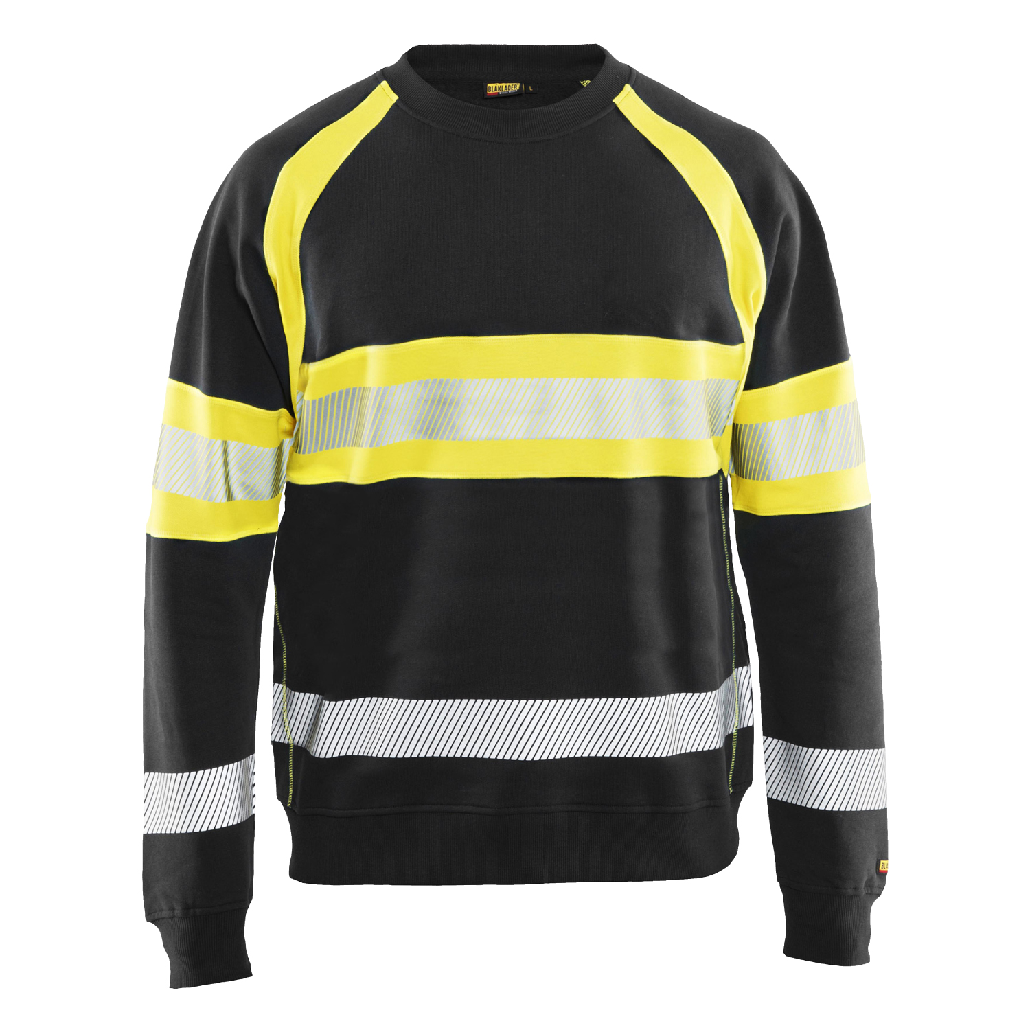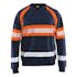 Mjuk varseltröja från Blåkläder med skurna, 50 mm breda, transferreflexer för extra bra stretchegenskaper och andningsförmåga. Tröjans mörka parti består av 100 % bomull och varselpartiet är gjort i 100 % polyester.