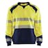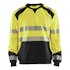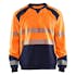 Sweatshirt i varsel från Blåkläder med känguruficka. Tröjan har två färger, en i varsel och en mörkare färg på smutsutsatta partier. Den har praktiska funktioner såsom hål för hörlur i fickan samt mobilficka med blixtlås.