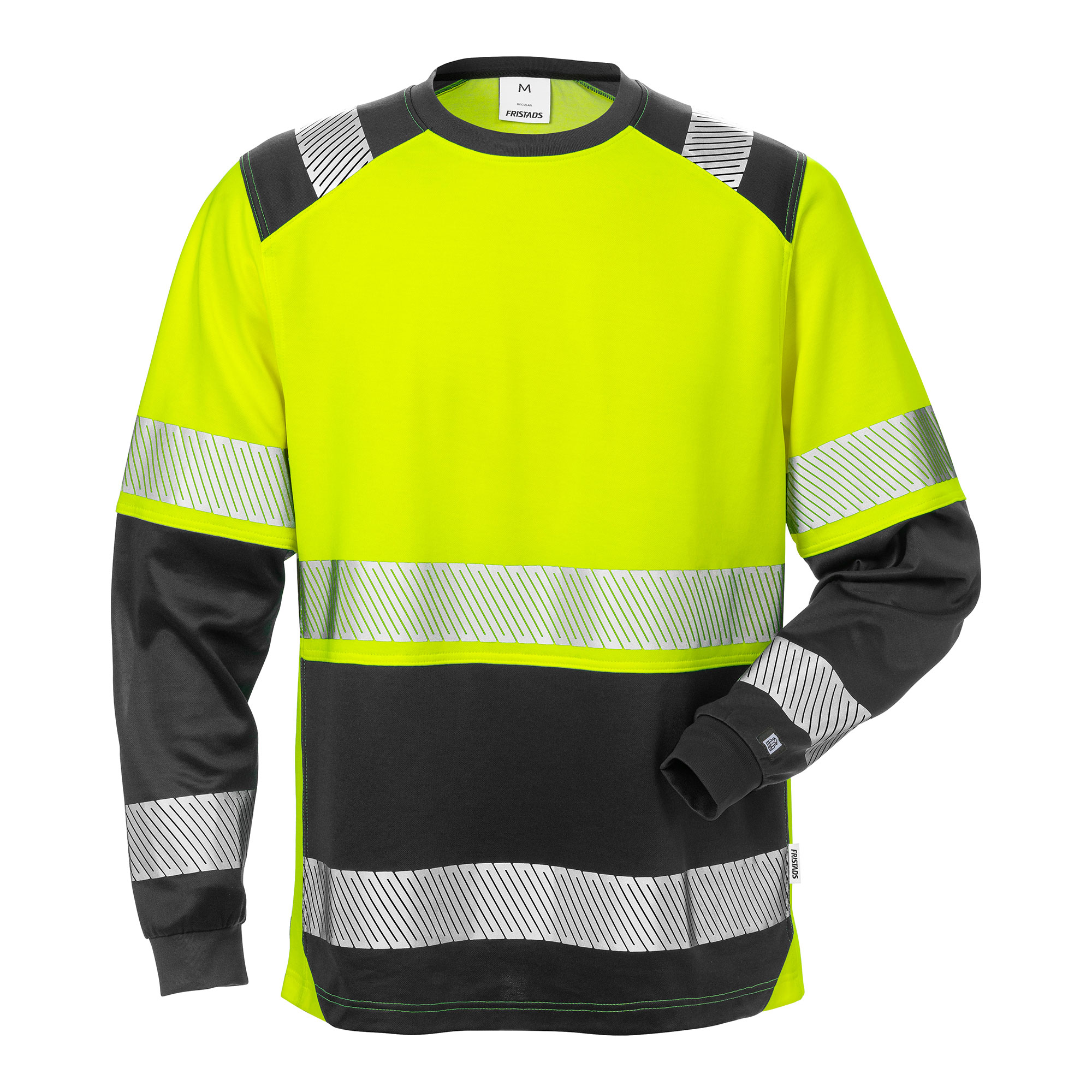 Långärmad varselcertifierad t-shirt från Fristads med stretch-reflexer för extra rörelsefrihet. Tillverkad i ett mjukt och bekvämt stretchmaterial med bomull på insidan. Transporterar fukt, torkar snabbt och har UV-skydd. Designad med mörk färg på partier som ofta utsätts för smuts.