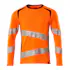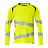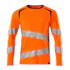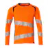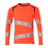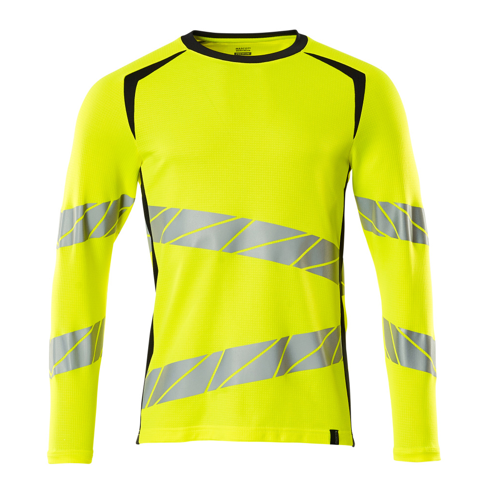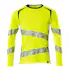 Fluorescerande med sneda tvärgående reflexer. Tvåfärgat. Modern passform. Behaglig bomullsinsida och slitstark polyester med stretch på utsidan. Kvadratiskt jacquardmönster. Reflexen är elastisk. Rund hals. Ribbstickning i halsen. Nackband.