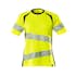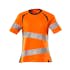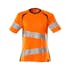 Lady passform. Fluorescerande med sneda tvärgående reflexer. Tvåfärgat. Modern passform. Behaglig bomullsinsida och slitstark polyester med stretch på utsidan. Kvadratiskt jacquardmönster. Reflexen är elastisk. Rund hals. Ribbstickning i halsen. Nackband.