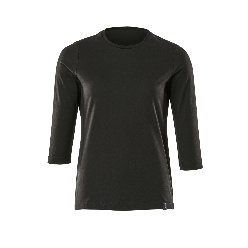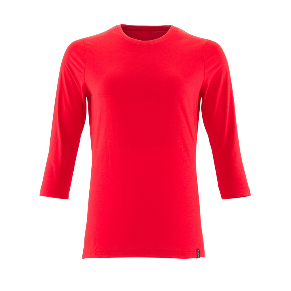 Lady passform. Kraftig kvalitet. Kammad bomull. Förkrympt. 3/4 ärmar. Rund hals. Ribbstickning i halsen. Nackband. Förberedd för insättning av namnlapp samt HF- och UHF-chip. Lämplig för industritvätt.