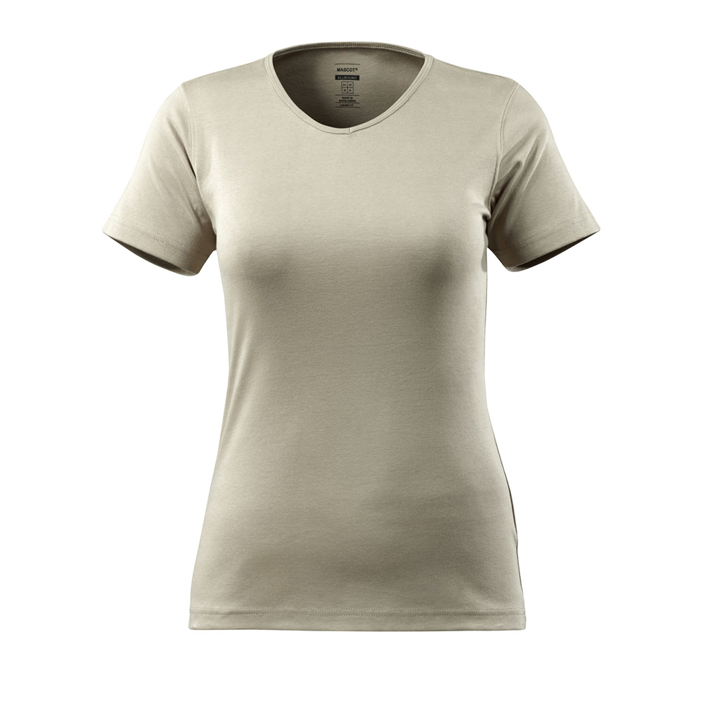 Ett 100 % bomullsmaterial som är fuktabsorberande och behagligt att bära närmast huden. Speciellt designat och figursytt för kvinnor. Ribbstickning på hals. Extra fodring över sömmen i nacken så att sömmen inte stör.
