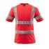 Fluorescerande och med lod- och vågräta reflexer. Enfärgade. Modern passform. Behaglig bomullsinsida och slitstark polyester på utsidan. Reflexen är elastisk. V-hals. Ribbstickning i halsen. Nackband. Nät med ventilation under ärmarna.