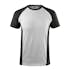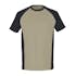 Tvåfärgat. Kammad bomull. Modern passform. Kraftig kvalitet. Förkrympt. Rund hals. Ribbstickning i halsen. Nackband.