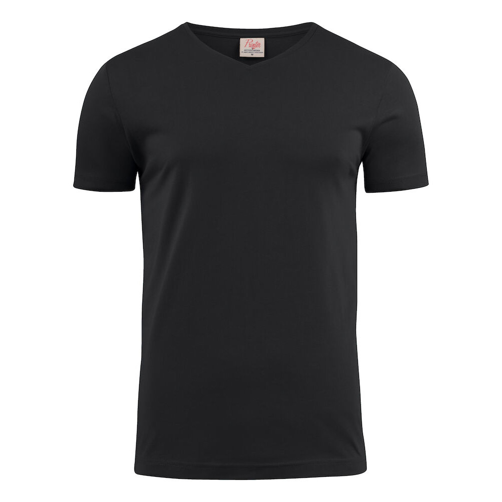Modern V-ringad T-shirt med förstärkta axelsömmar och nacke. Stretchig 2-lagers ribb i halshål. Oeko-tex certifierad