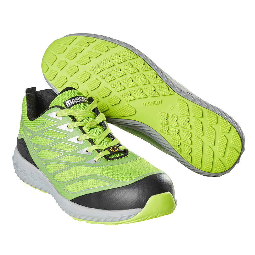 Den främre delen av skon följer flexibelt foten när den böjs. Metallfri. Yttermaterial i slitstark textil. Tåhätta av komposit. MASCOLAYER® spiktrampskydd. Stötdämpande, mjuk och flexibel innersula. Inläggssulor som är avtagbara. Mellansulan i Phylon. Slitsula av gummi. TPU-hälförstärkning. Slitstark yttersula som inte lämnar märken (non-marking). Sulan är resistent mot olja och bensin. ESD-godkända enligt EN IEC 61340-4-3: 2018 + EN 61340-5-1: 2016.