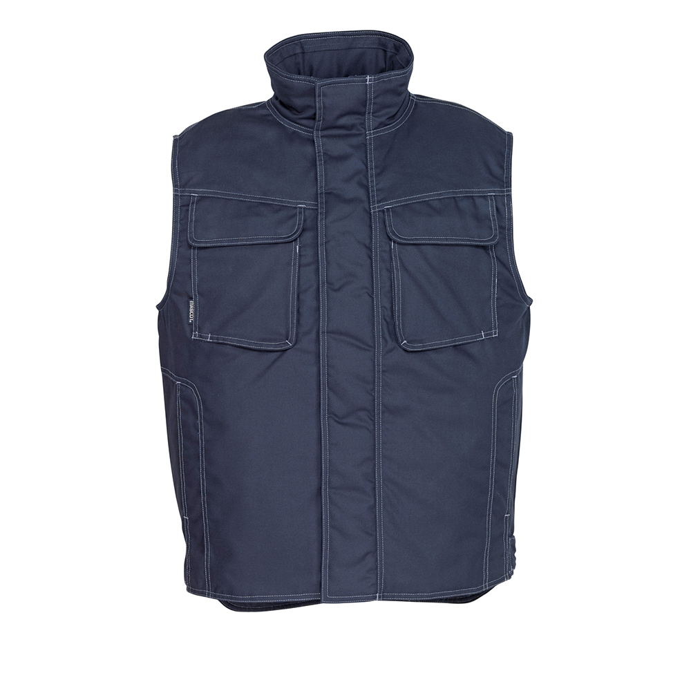 Kviltfoder. Extra skydd mot kyla genom förlängd rygg. Elastiska band i ärmhål sluter till bra och ser till att värmen stannar vid kroppen. Invändigt blixtlås längst ned på rygg som används för broderi eller tryck på produkten. Extra synlig för omgivningarna med hjälp av reflexeffekter.