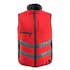 Fluorescerande med sneda tvärgående reflexer. Tvåfärgat. Andas, vindtät och vattenavvisande. Vadderat. Stängning med blixtlås och invändigt vindfång. Hög krage. Innerficka med blixtlås som är särskilt utformad för telefoner, med hål till kabel och headset och öglor för att hålla kabeln på plats. Bröstfickor med blixtlås. D-ring. Framfickor med blixtlås.