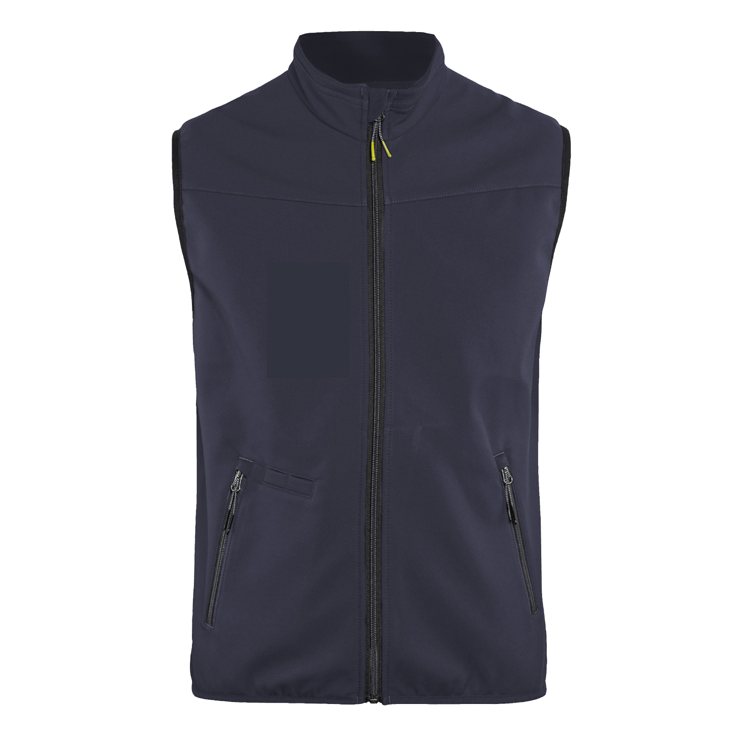 Tvåfärgad softshellväst från Blåkläder i vindavvisande material med god andningsförmåga. Stretchpanel i rygg ger ökad rörelseförmåga och ventilation. För optimal komfort har den förlängd rygg, fleecefodrad krage samt justerbar nederkant. Lämpar sig väl för arbete i sval inomhusmiljö.
