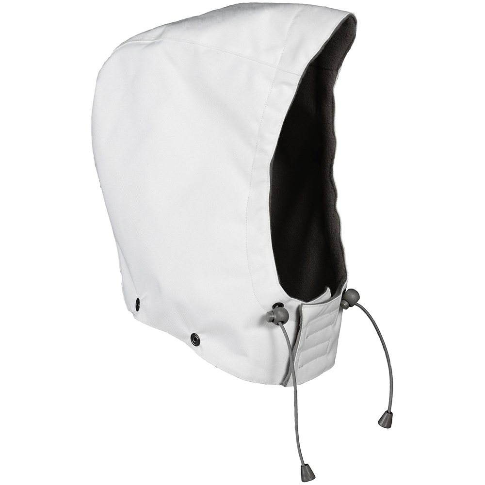 Andningsbar, vind- och vattentät MASCOTEX® med tejpade sömmar. Fleecefoder. Justerbara elastiska band. Kardborreband vid hakan. Sätts fast med tryckknappar.