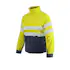Vadderad jacka i smuts- och vattenavvisande material med dragkedja upp i kragen. Slå fram med tryckknappar. Två bröstfickor varav en med hälla för Inbags. Två djupa sidfickor med blixtlås. Innerficka med blixtlås. Reglerbar linning och manschett.