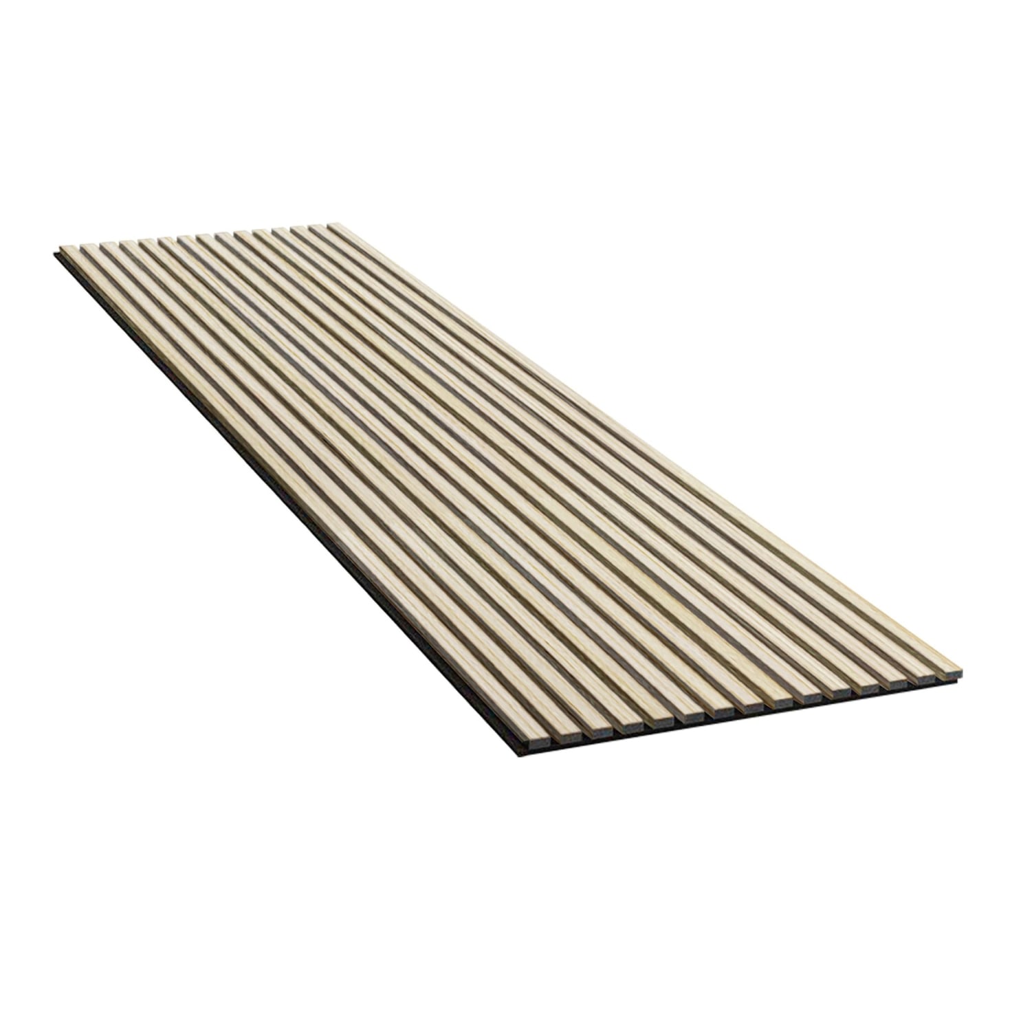 Akustikpanelens bottenfilt är 100 % återvunnen polyesterfiber, som är speciellt utvecklad för att minska ljudnivån och eliminera rumsefterklang. MDF-lamellerna som fästs på basfilten är belagda med äkta träfaner, vilket ger panelen en naturlig, vacker finish. Monteringen kan göras med medföljande skruvar eller separat köpt lim.