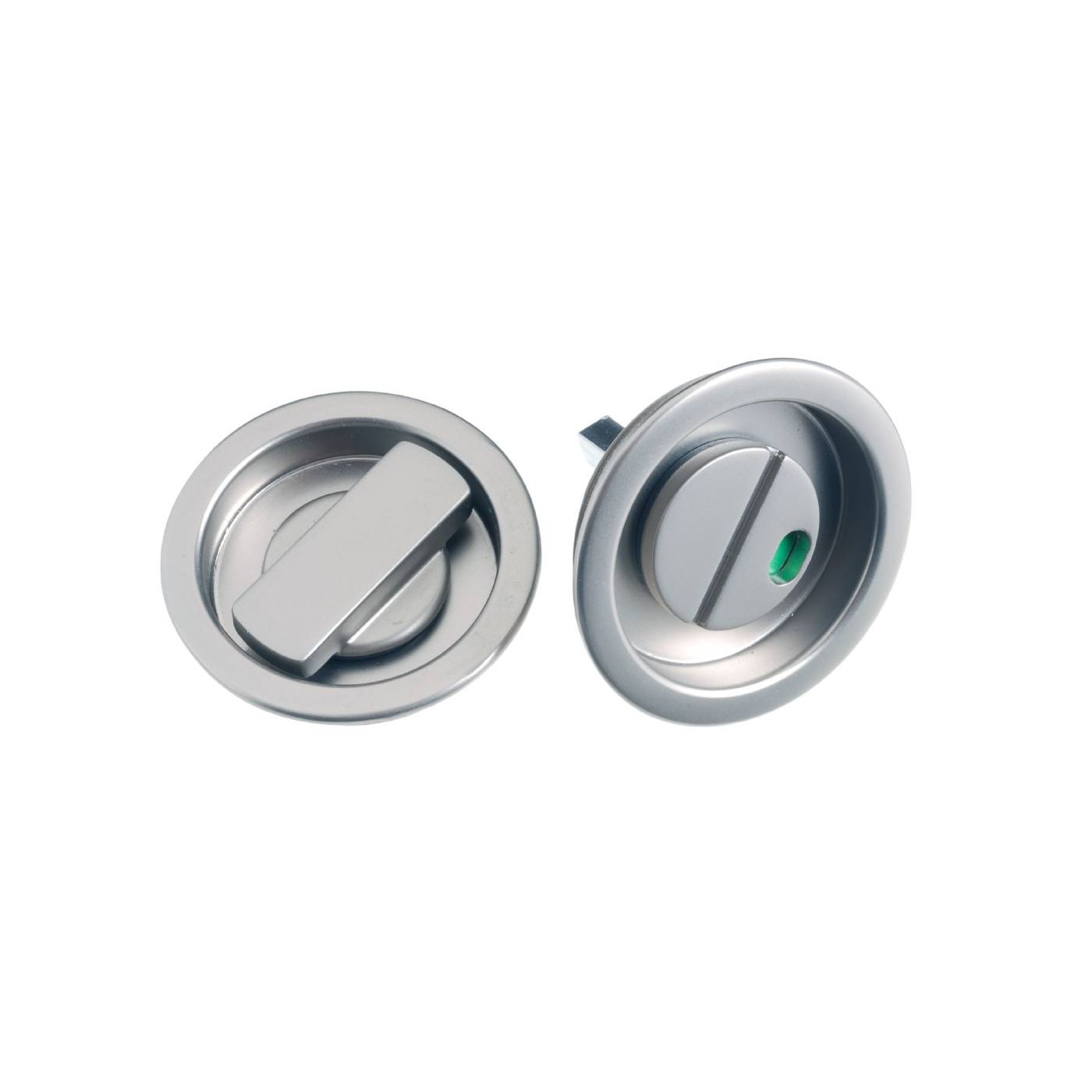Toalettvred för skjutdörrar. Levereras med 5 mm roddarpinne. Avsett för hål med 40 mm i diameter. Anpassat för 40 mm dörrtjocklek.
