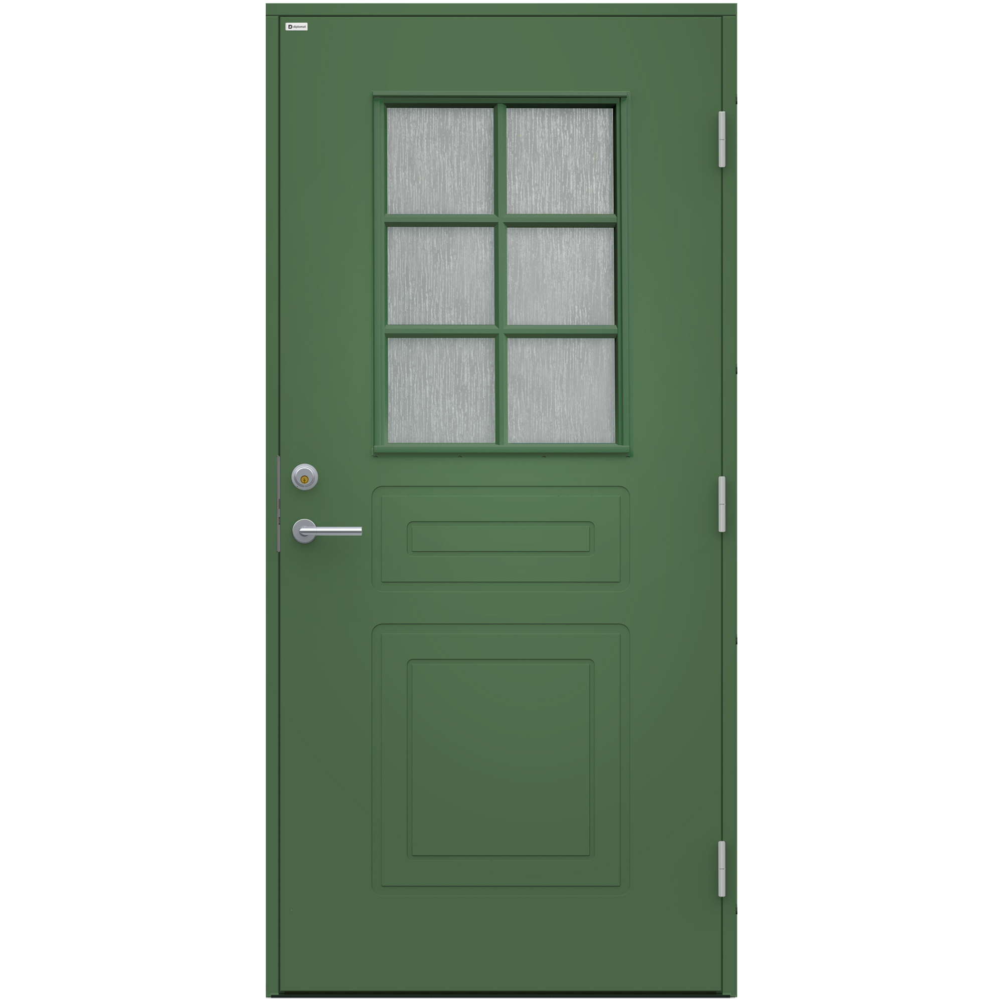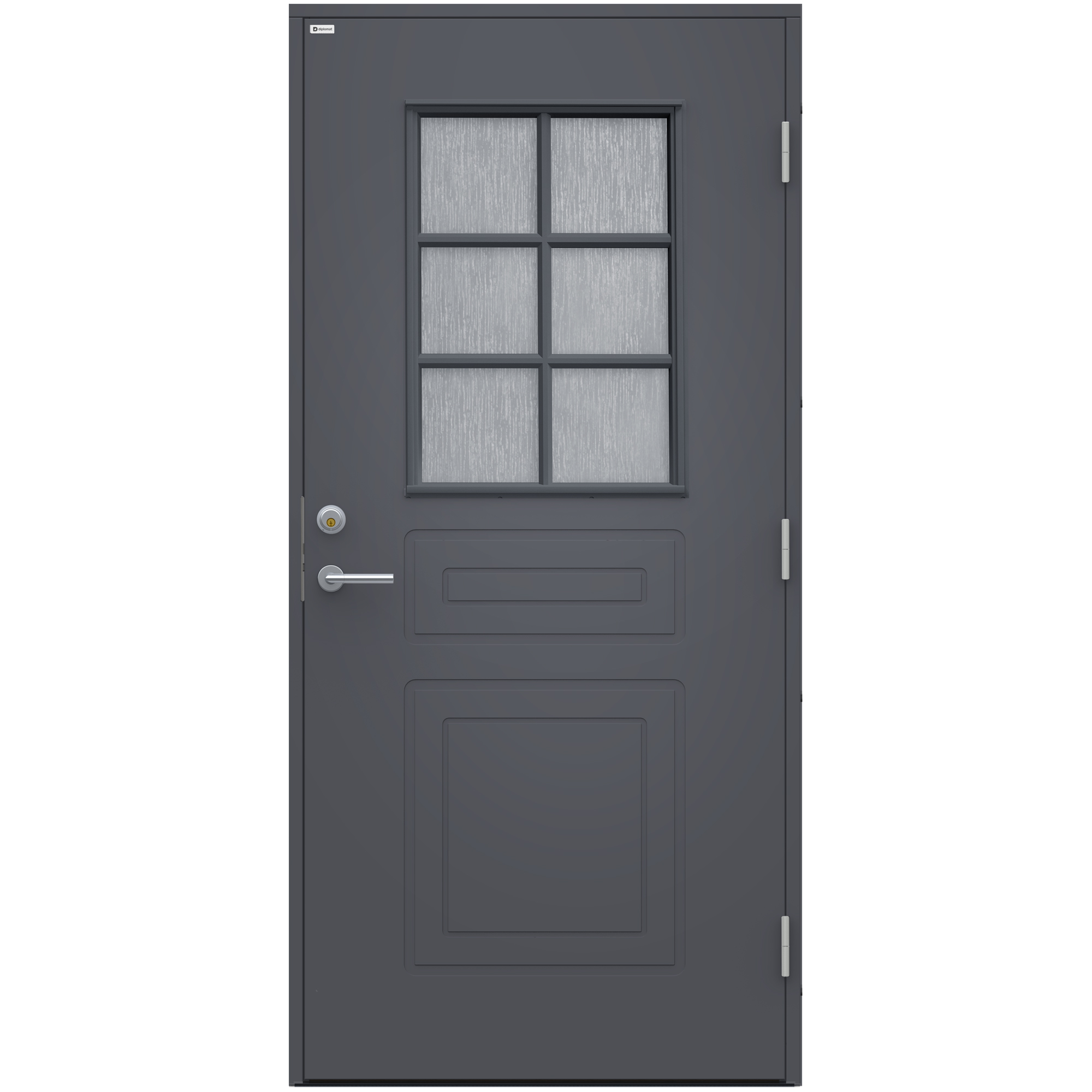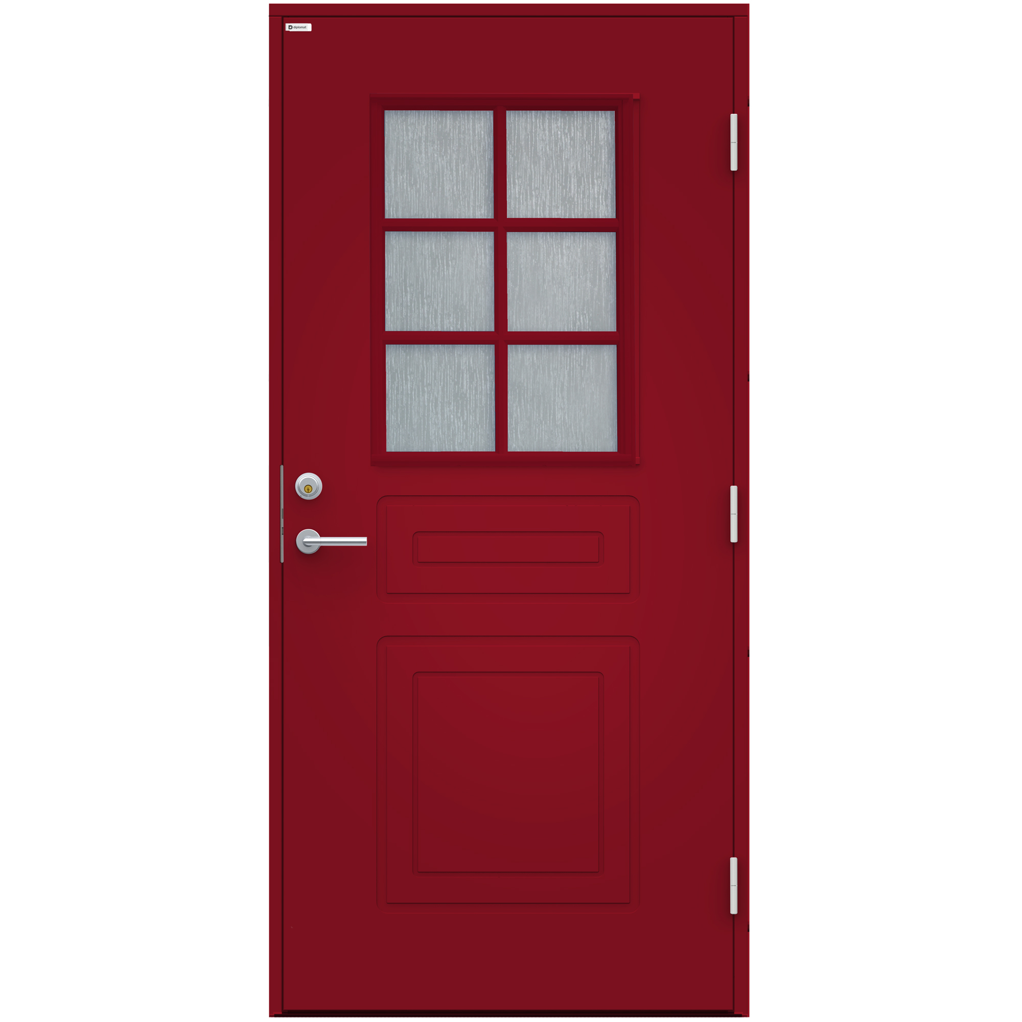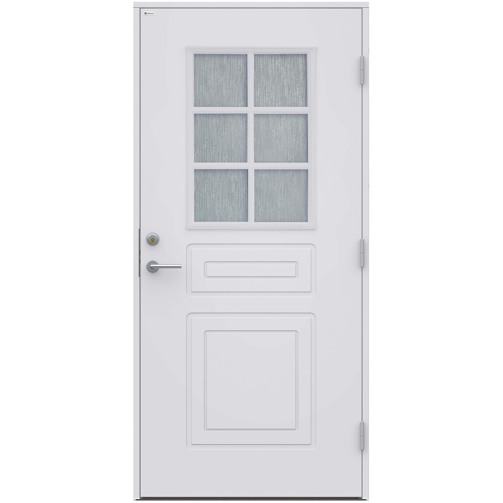 En dörr från Diplomat ska inte behöva bytas titt som tätt, de är gjorda för att hålla i långa loppet. Trästommen är i furu som fylls med cellplast för få en bra isolering. Ett lager med aluminiumplåtar håller fukten borta och ytterst sitter antingen en HDF-skiva eller laminat. Du har även möjlighet att personifiera din dörr och göra den unik med tillval och färg.