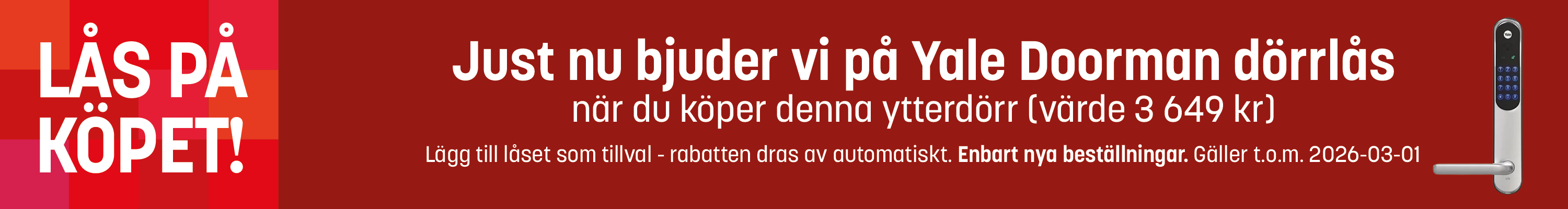 - Dubbel tätning med tätningslist i både karm och på dörrblad.