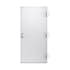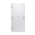 Stomme av polystyren cellplast med heltäckande aluminiumplåtar på båda sidor. Dörrbladstjocklek ca 60 mm. Syrahärdande lackfärg med hög utomhusbeständighet, glansvärde ca 20. NCS-kulör S 0502-Y.