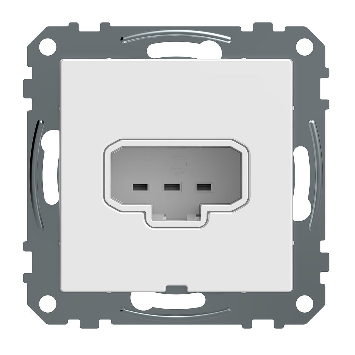 1-vägs 2-pol jord 6A IP21, snabbanslutning. Mått: 55x55 mm. För infälld montering i apparatdosa c/c 60 mm, kopplingsdosa c/c 67 mm eller utanpåliggande dosa 35 mm. Kompletteras med valfri Exxact-ram.