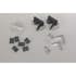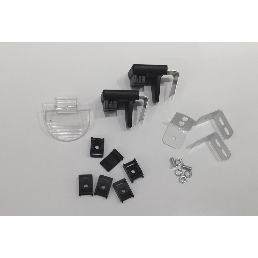 Tillbehörsset för plisségardin Flex som innehåller 2 easyfit-beslag, 1 handtag, 4 L-beslag, 4 ändproppar för överlist, 2 ändproppar för underlist.