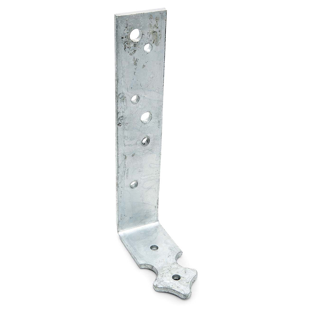 Torvtakskrok PRH används till hustak som är täckta med torv. Material: Varmförzinkad stål. Spikhål: Ø 5,0 mm Bulthål: Ø 9,0 mm.