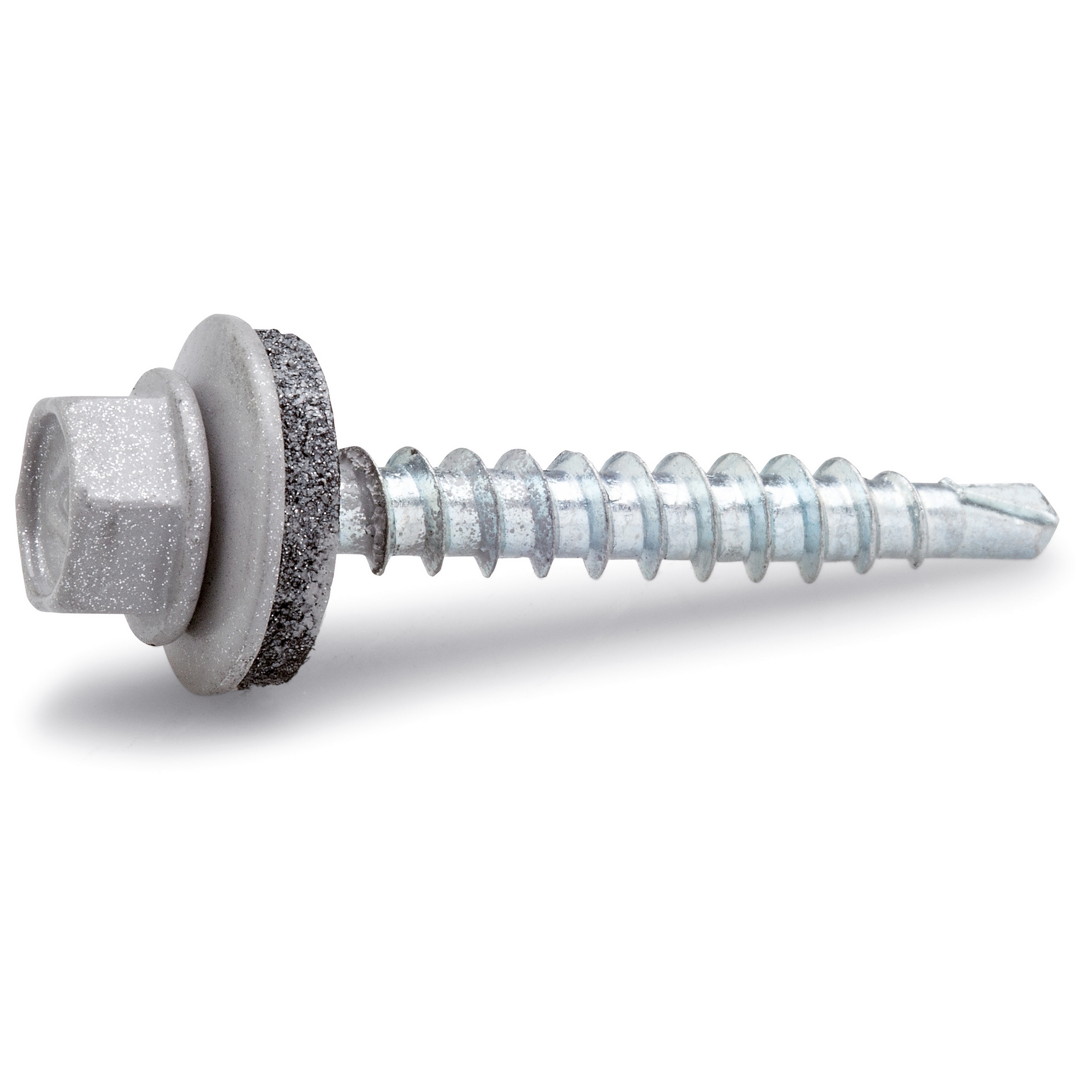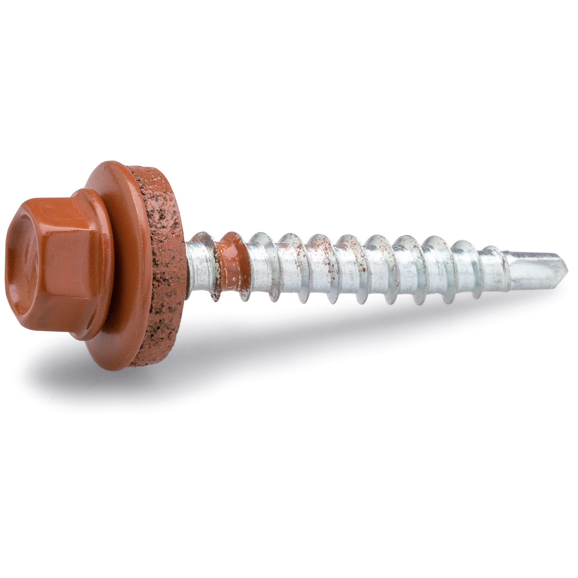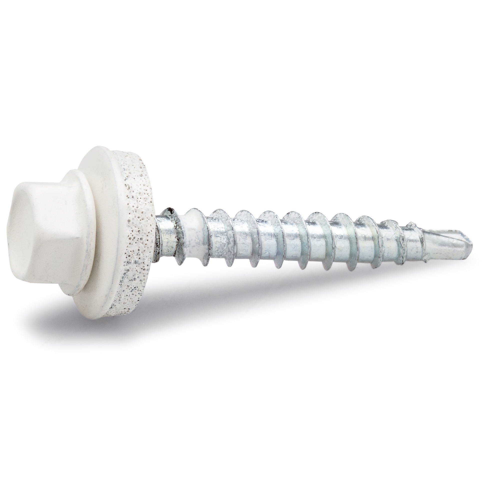 Farmarskruv FAST FZB är en borrande och gängpressande skruv för utvändig infästning av byggplåt, lackerad i samma färg som byggplåten. Sexkantskalle med fläns. Ledad bricka med tätning av EPDM-gummi. För träregel. Ytbehandling: Elförzinkad, lackerad. Burk. Nyckelvidd: 8 mm.
