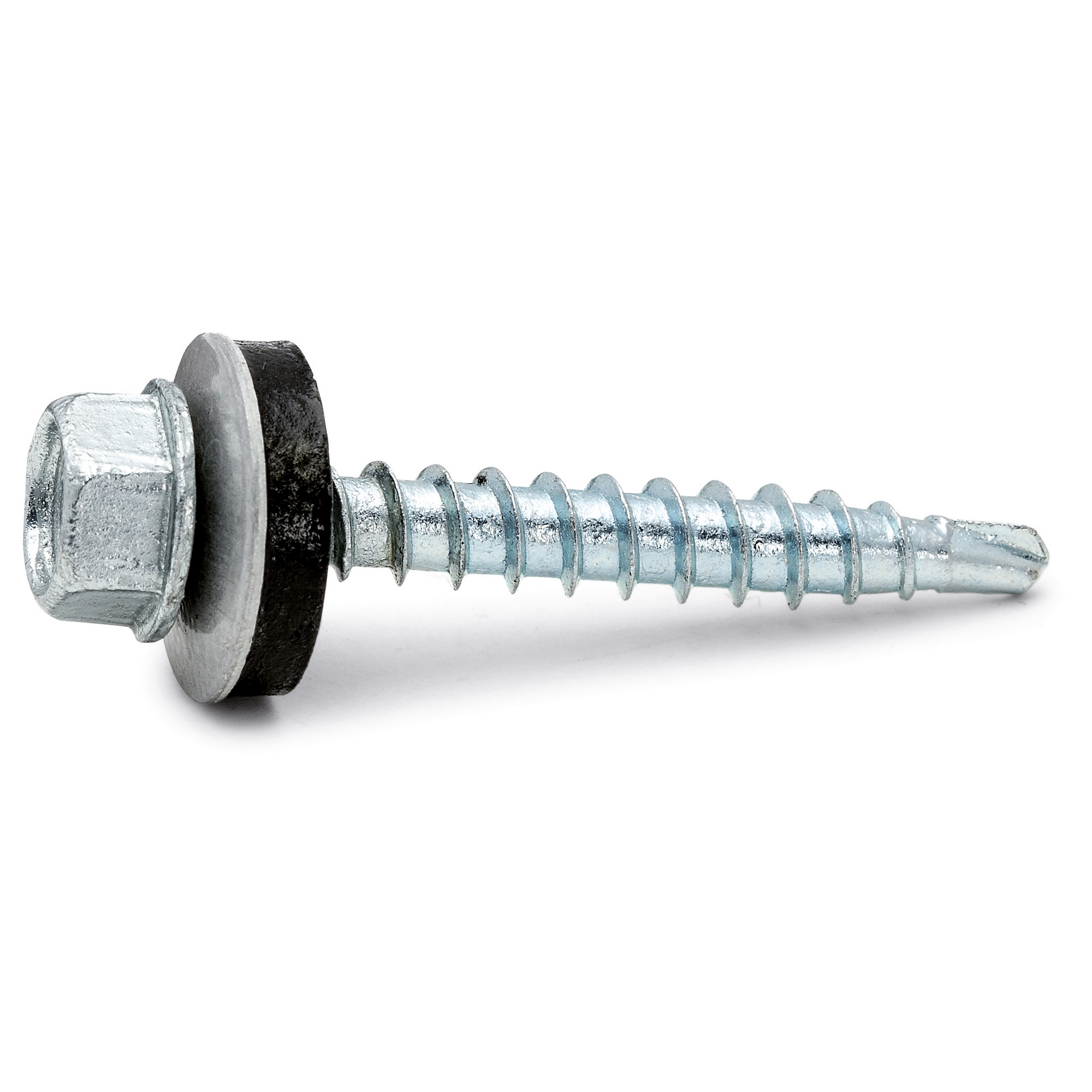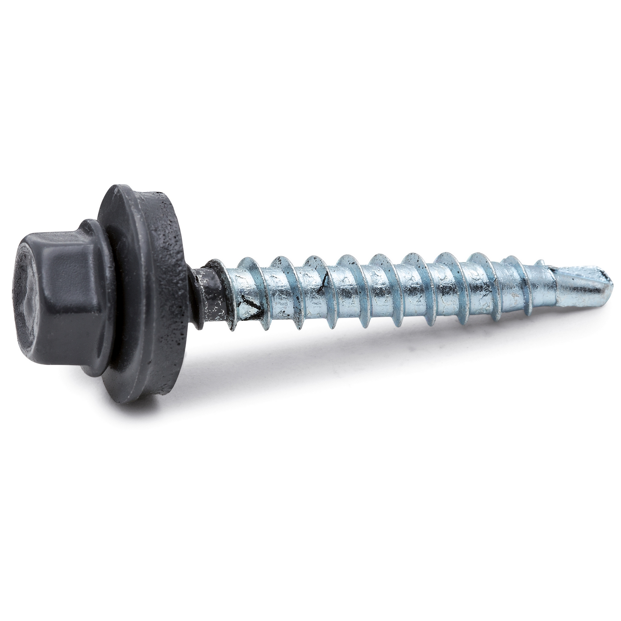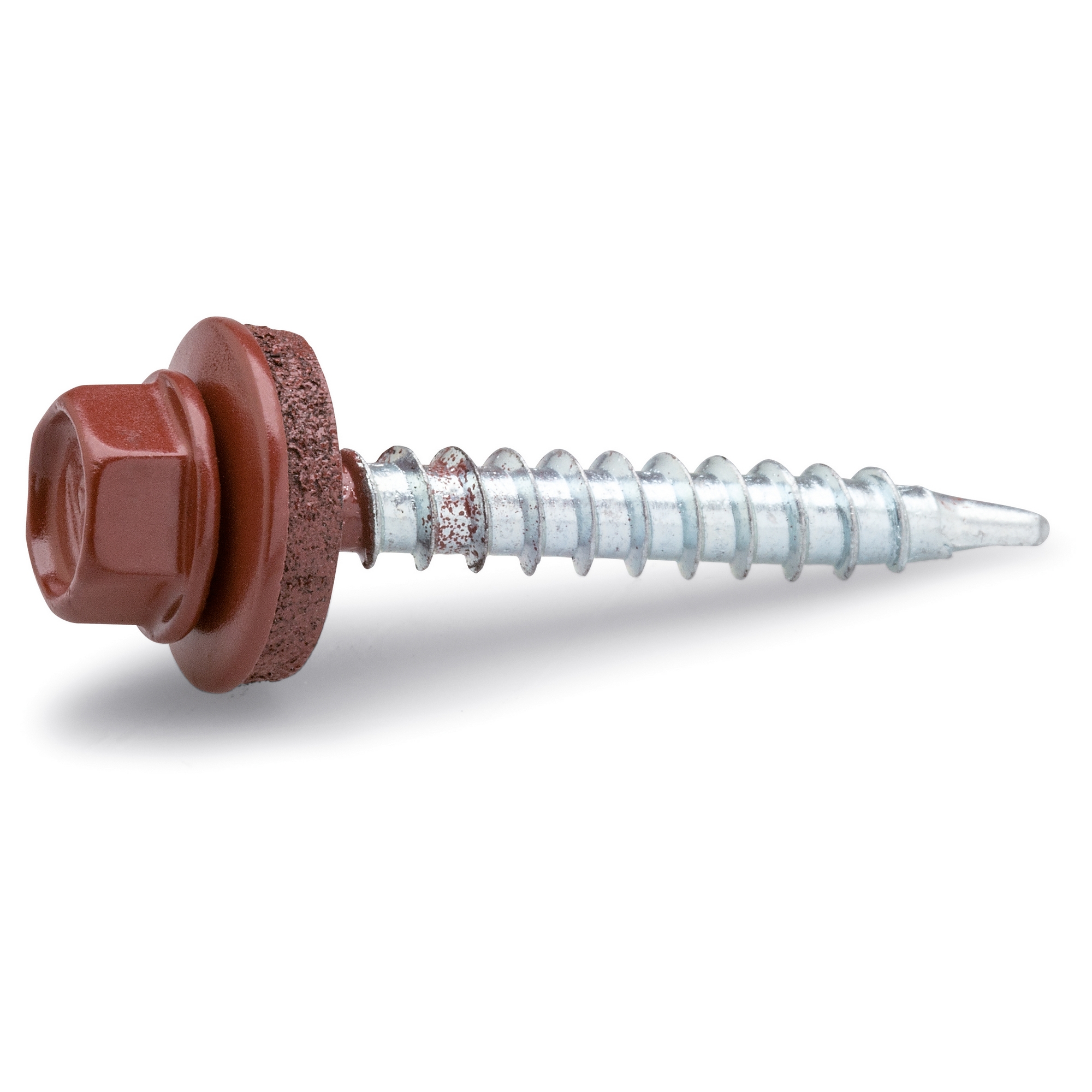 Farmarskruv FAST FZB är en borrande och gängpressande skruv för utvändig infästning av byggplåt, lackerad i samma färg som byggplåten. Sexkantskalle med fläns. Ledad bricka med tätning av EPDM-gummi. För träregel. Ytbehandling: Elförzinkad, lackerad. Burk. Nyckelvidd: 8 mm.