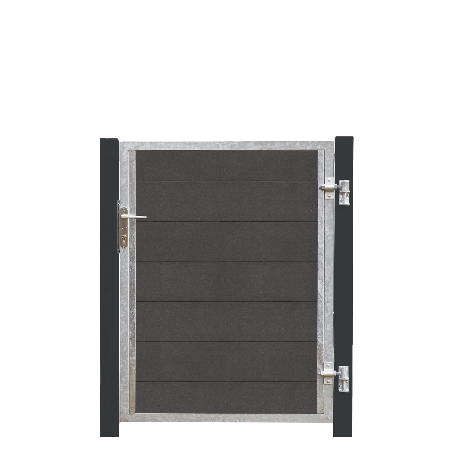 Information- Stålstolpar: 8x8x236 cm- Grindram: 2 mm varmgalvaniserad stål 30x40 mm- Kompositplankor 25x180 mm Inklusive rostfri låskista med 3 nycklar, 4-stift cylinder och tillbehör.