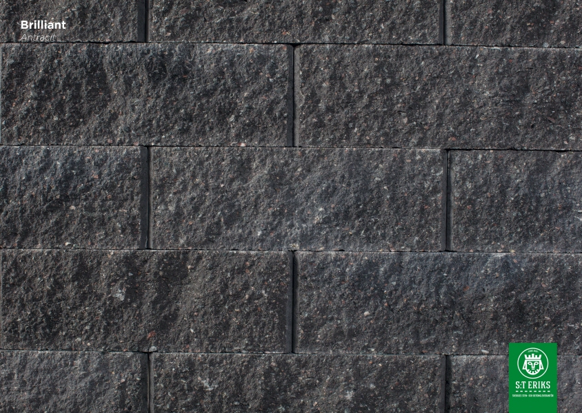 Brilliant är ett stödmursblock med rakklippt front. Muren går att bygga på två sätt, med svag bakåtlutning (4°) eller utan bakåtlutning (0°).Om lutning önskas används en distans.