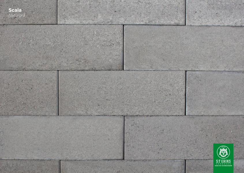 Scala block ger en stabil och tydlig inramning av den lagda ytan och precis som markstenen i samma serie är blocket otrumlat och därmed ofasat. Denna serie produkter är framtagen med fokus på funktionell arkitektur. Blanda de olika blocken för en varierad mursida. Blocket fungerar även till små nivåupptagande trädgårdstrappor och terrasseringar.
