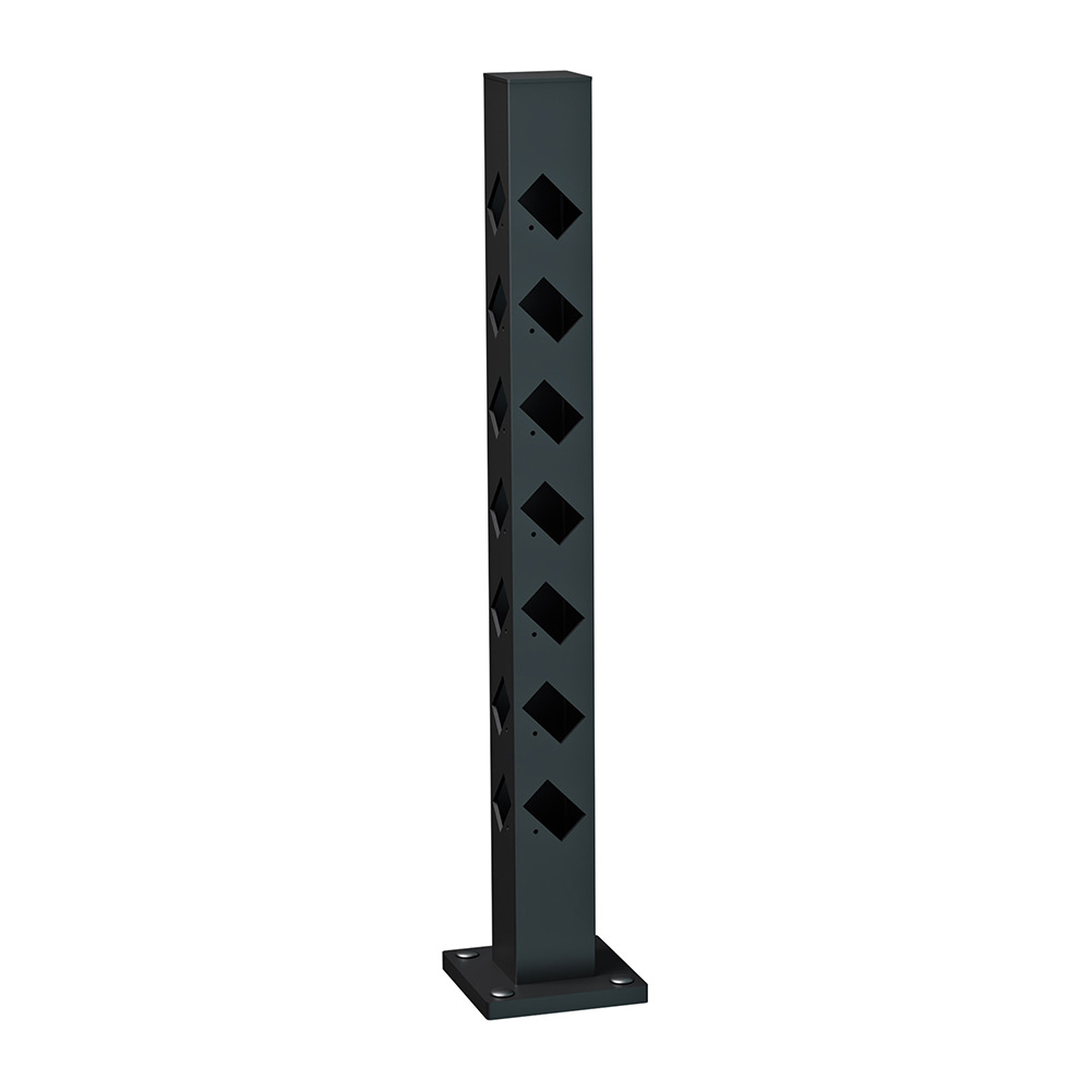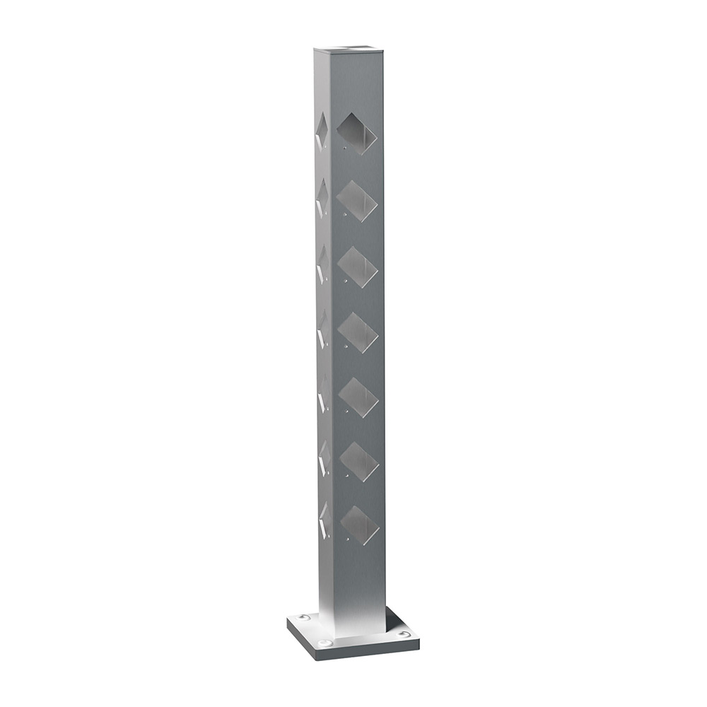 Stolpen är tillverkad i aluminium och stolparna har en dimension om 70X70mm och en godstjocklek på 2mm för att ge en stabil och gedigen känsla.