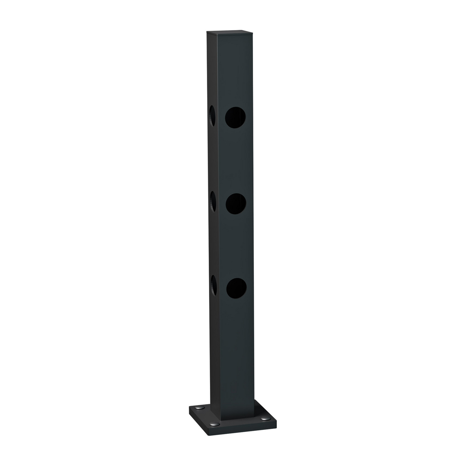 Stolparna är tillverkade i aluminium och har en dimension om 70 x 70 mm. Godstjockleken är hela 2 mm, vilket gör stolparna både stabila och gedigna. Stolparna går att få som naturanodiserade eller lackerade i antingen vitt (RAL 9010) eller mattsvart (RAL 9005). Monteringen sker med 40x40 rör.