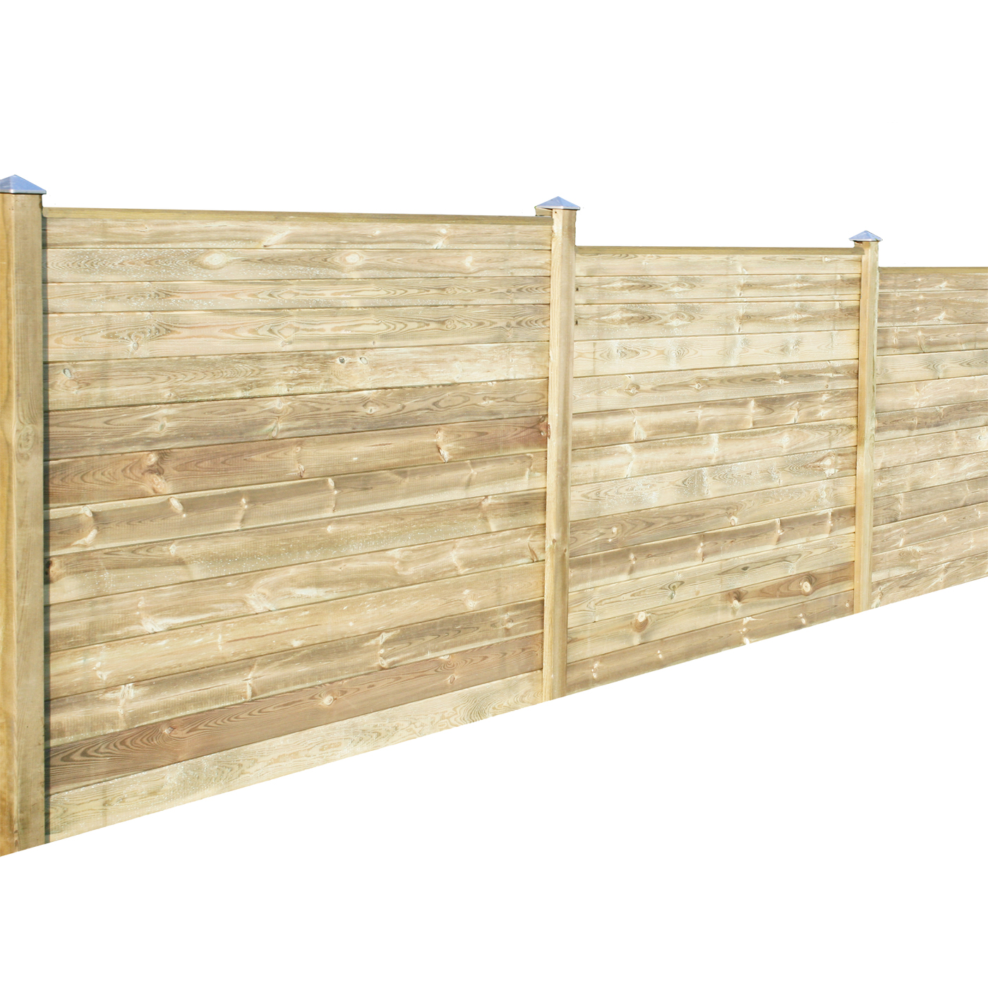 Denna lösning består av 3 sektioner med ca. 170 cm höjd och topprofil med platt avslutning samt fyra mellanstolpar. profilstaketplankorna har en höjd på 12 cm och ger ett täckyta på ca. 10,5 cm.