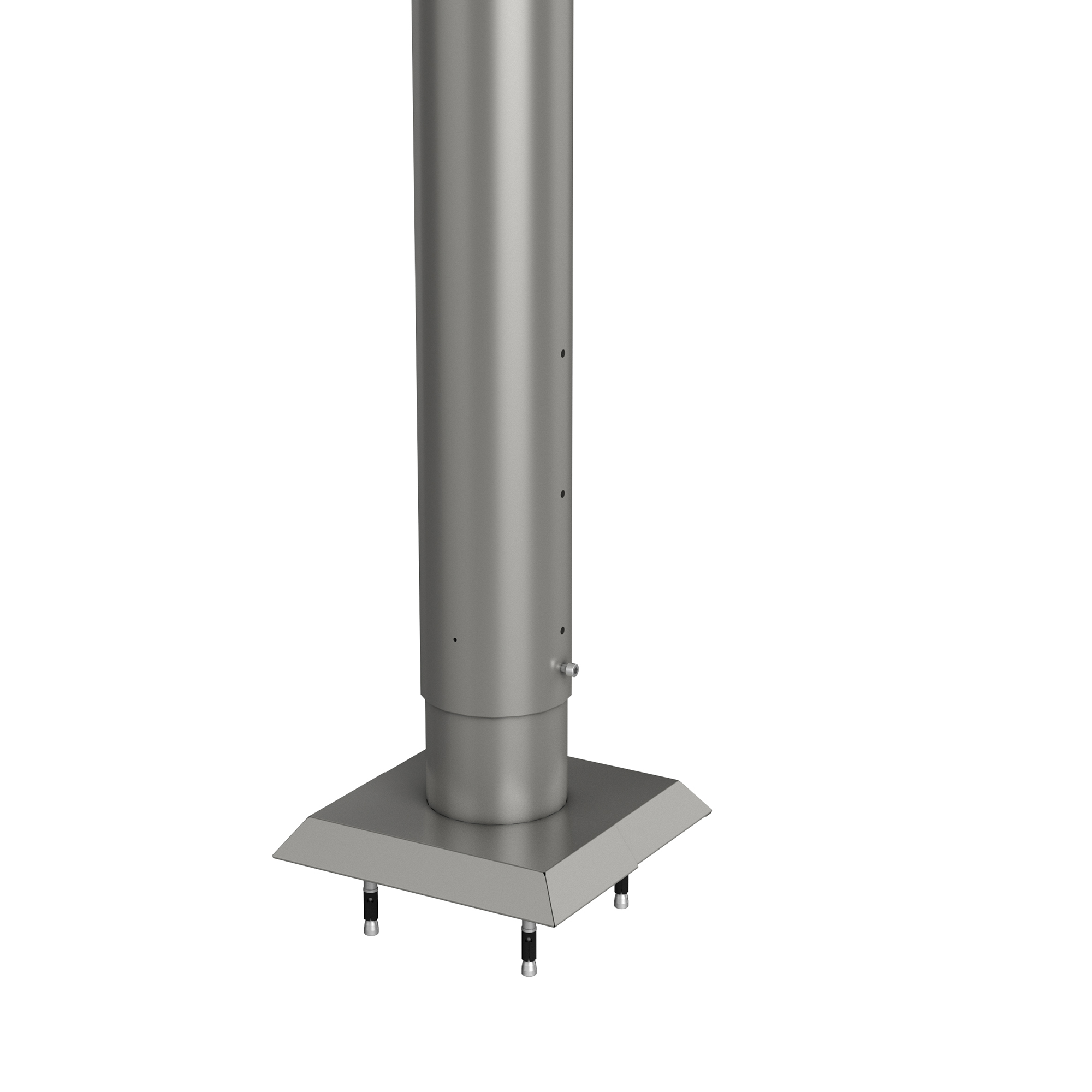 Stolparna kan användas som slut-, hörn-, eller anslutningsstolpar till skärmväggspanelerna. Basplattan bultas fast i ett frostsäkert betongfundament med hjälp av medföljande bultankare i rostfritt stål. Montering på terassplattor eller trä/WPC-skivor är inte tillräckligt. Höjdjusterbar upp till 25 cm.