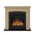 Kaminen har en flerskiktad mjuk finish på ytorna samt ett delikat välvt centrum, släta kolumner och en mittram med rundade kanter.